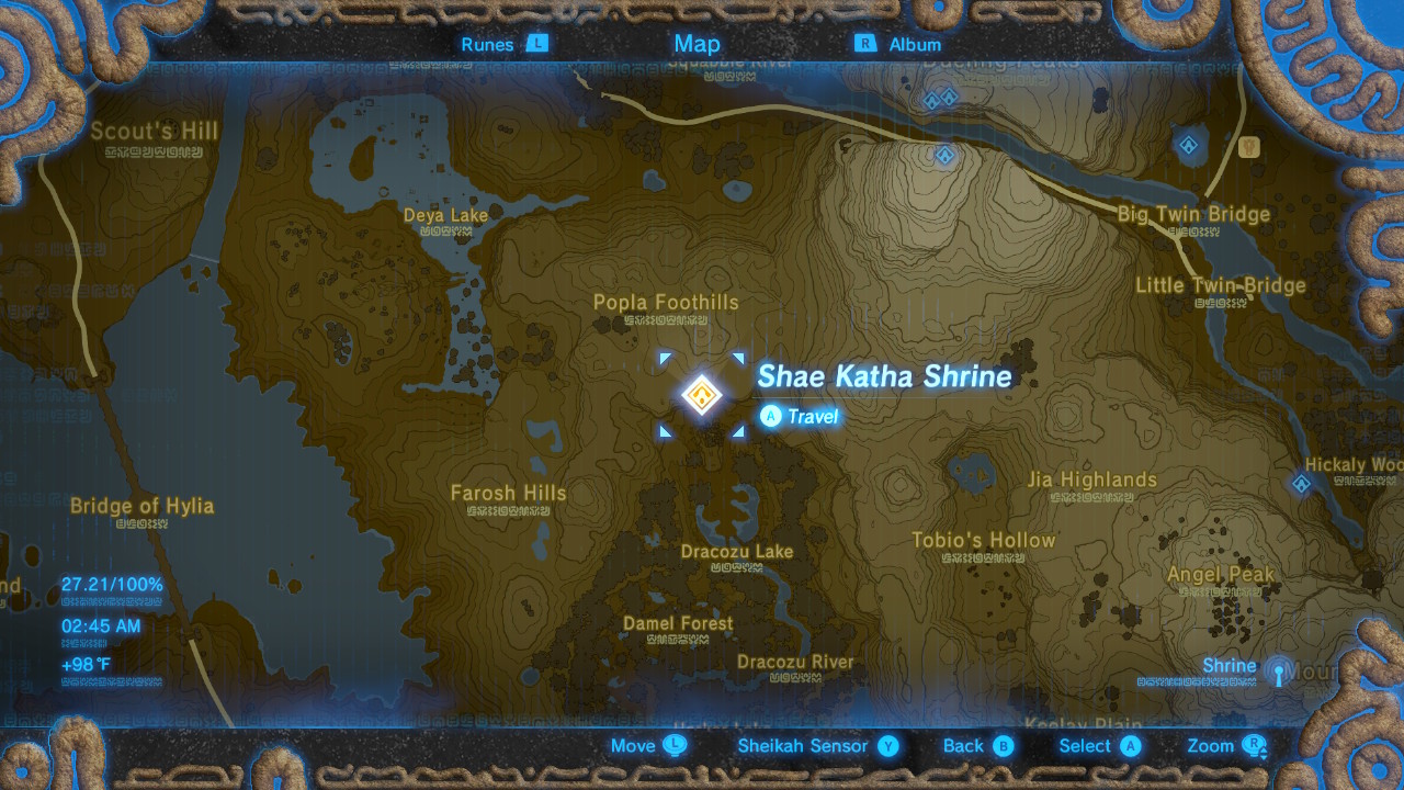 To find this shrine, Link first needs to find the Spring of Courage and pray at the goddess altar. This mysterious spring is found just southwest of the Dueling Peaks and just north of Dracozu Lake. Praying at the altar will reveal a new shrine quest — bring a dragon scale and drop it into the spring water to reveal a shrine.