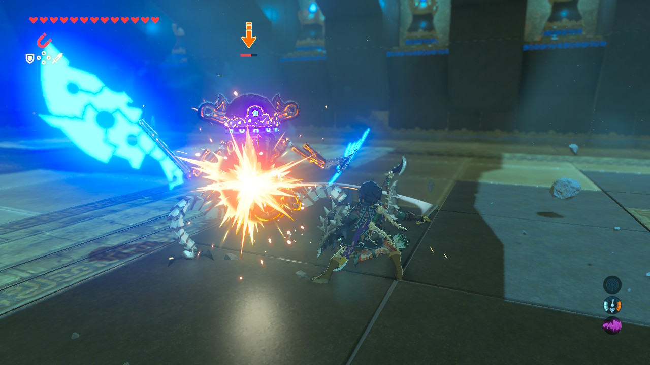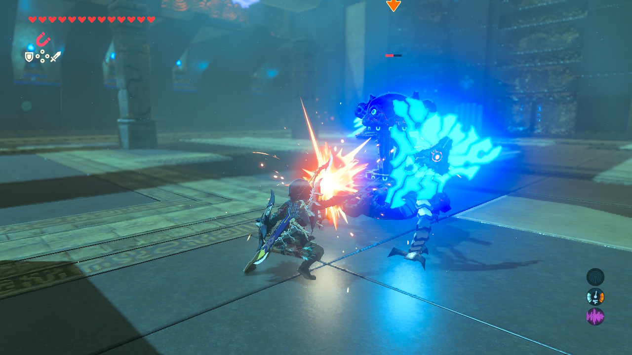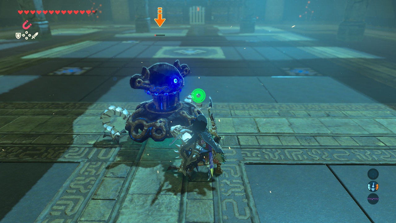 Here, you’ll have to do battle with a Guardian Scout Mark 3. These are pretty tough opponents, so don’t attempt to fight until you’ve cleared a couple of Divine Beasts, or upgraded a set of armor to Level 2. A handful of good weapons like Soldier Swords will help, but Royal Weapons from Hyrule Castle can make mincemeat out of these machines.