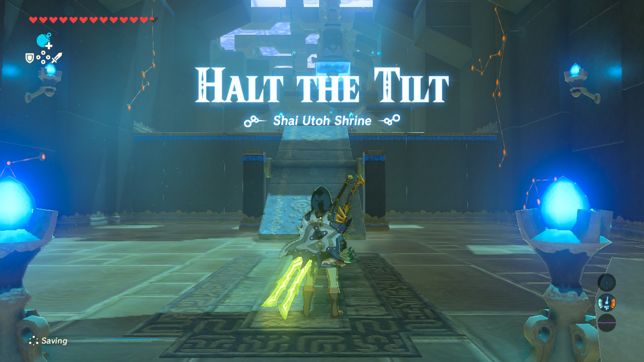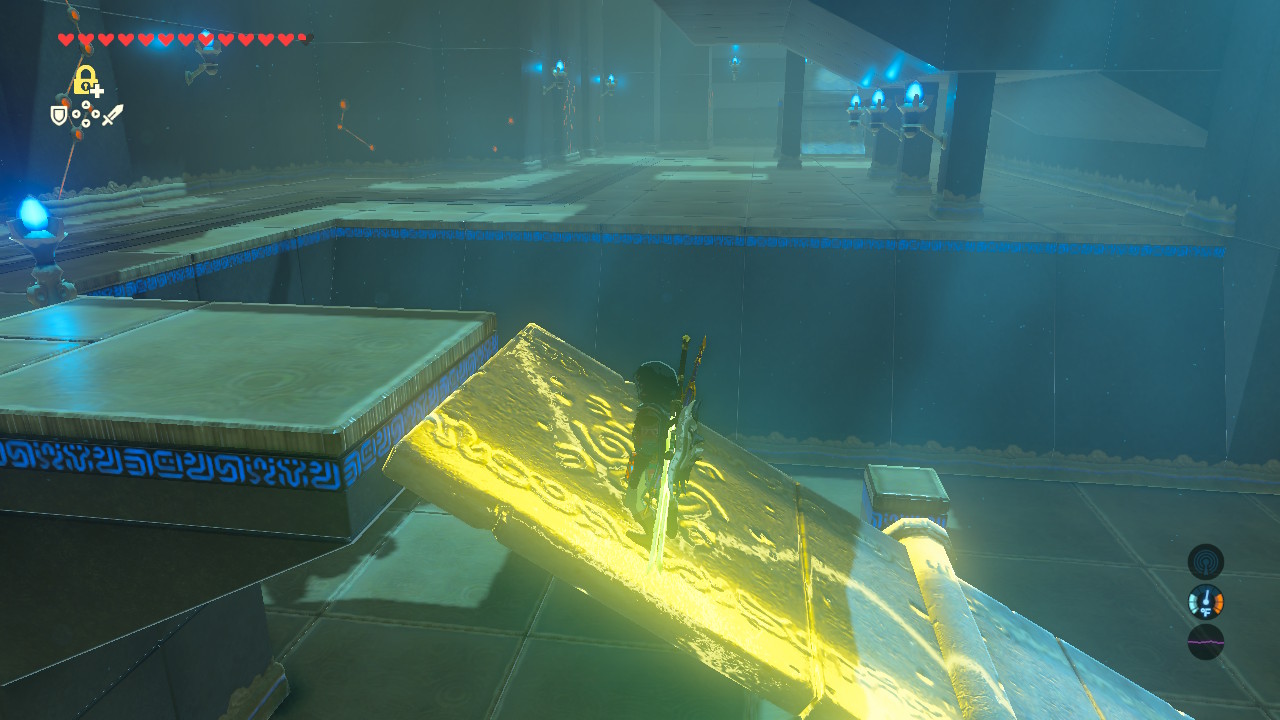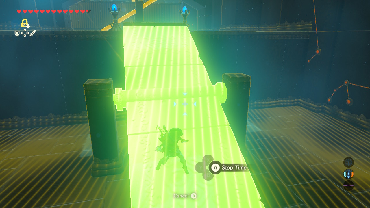 To solve this shrine, use Stasis on the ramp so it doesn’t tilt. At the second ramp, stand on the right side and Stasis it to reach the left platform.