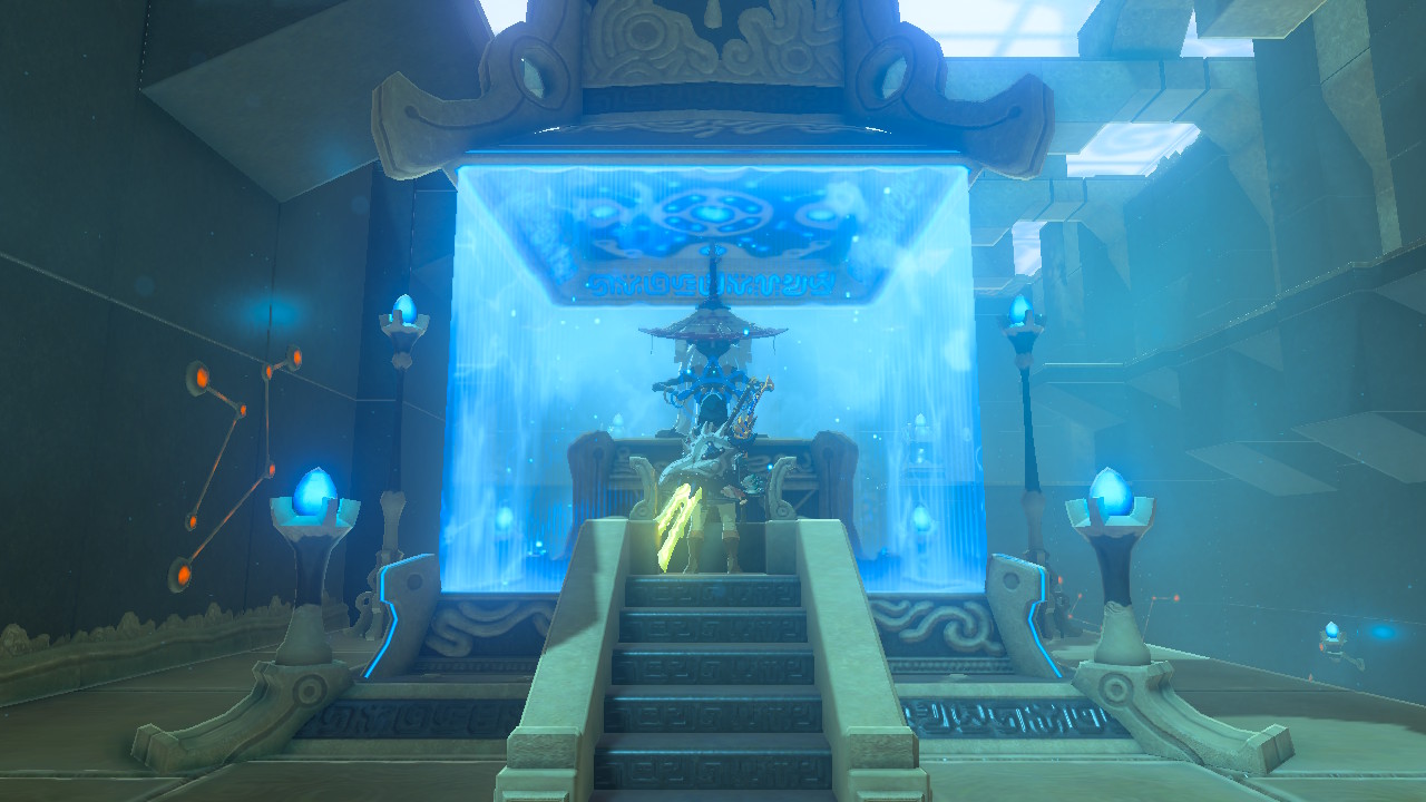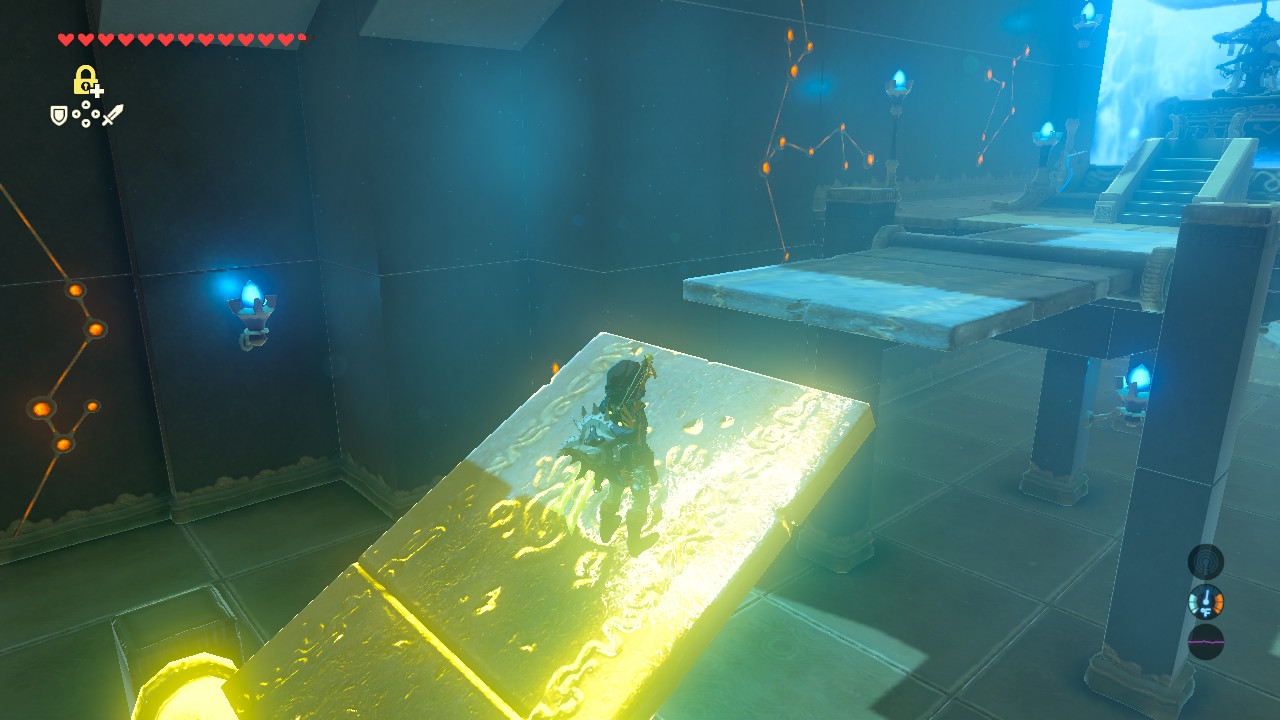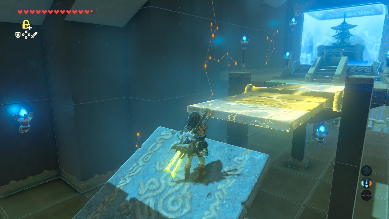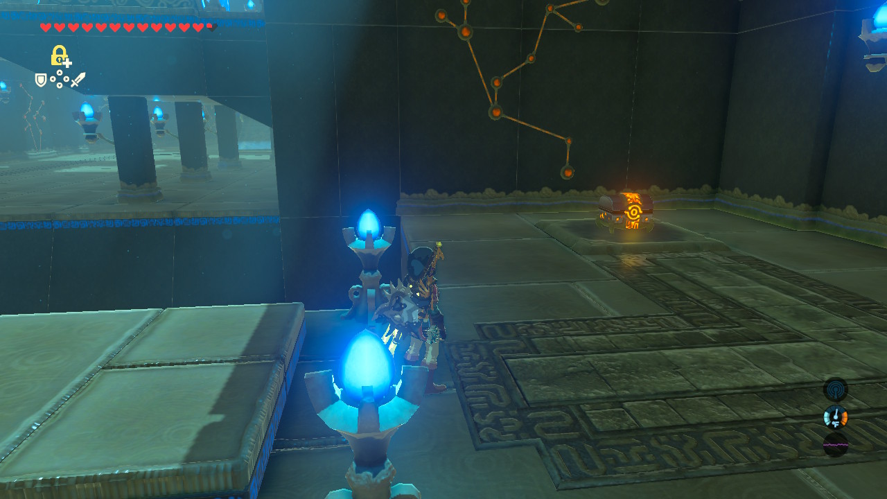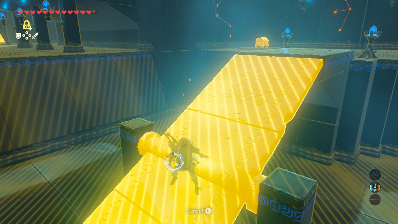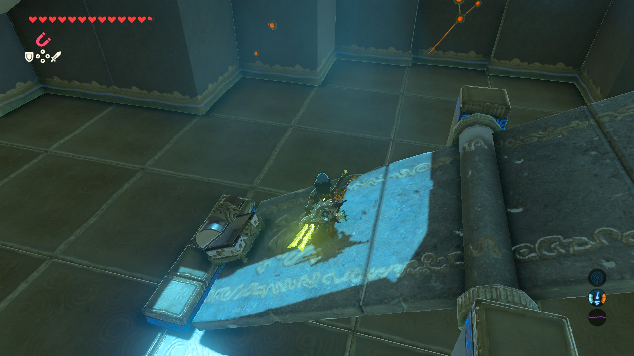 That chest isn’t as optional as it seems. Grab it with Magnesis and take it to the third tilting ramp. Place the metal chest to counter-weight the third ramp, then Stasis the fourth ramp. Now Link can reach the altar and complete the shrine in this region.
