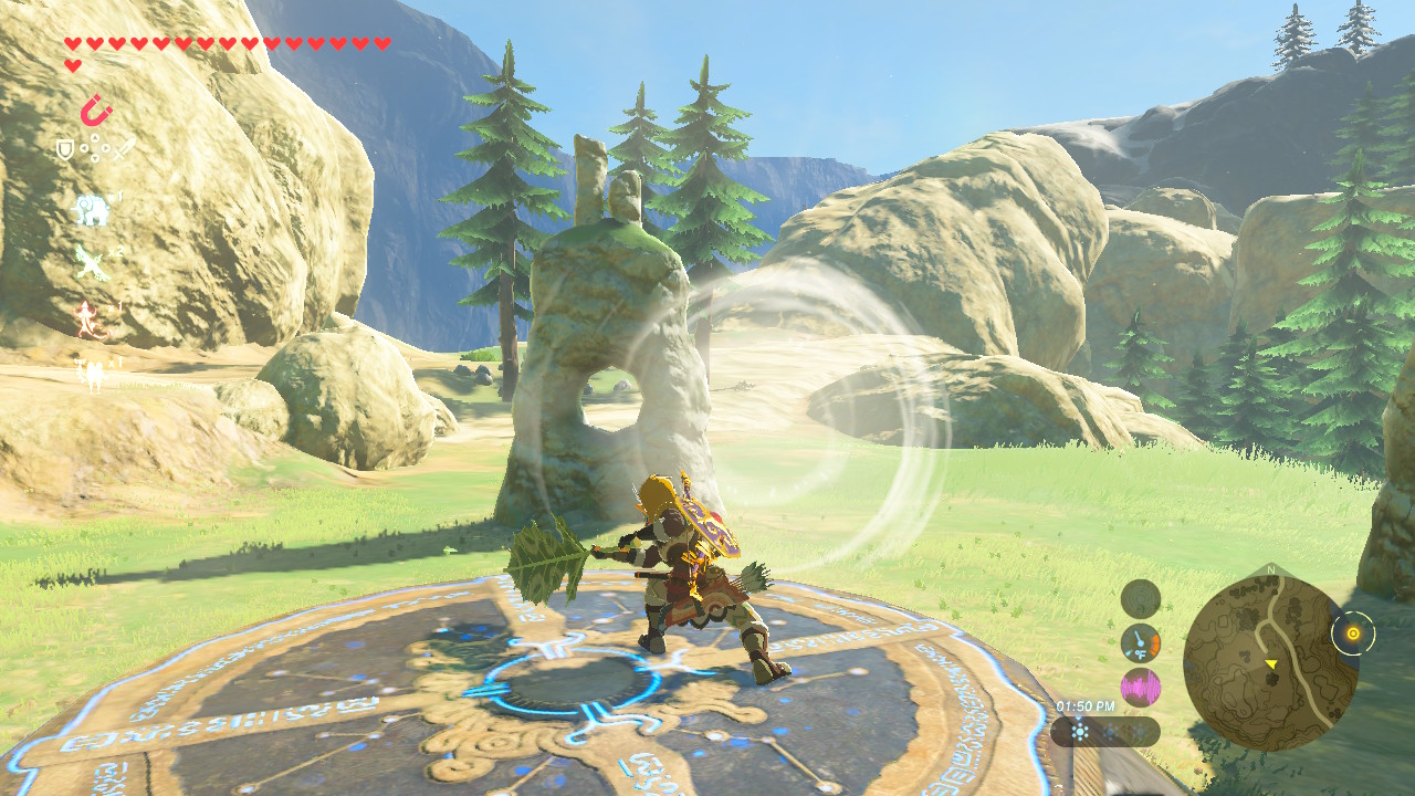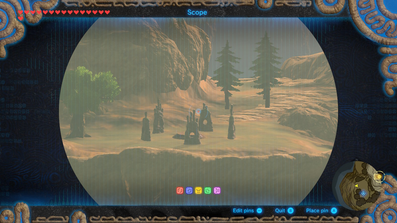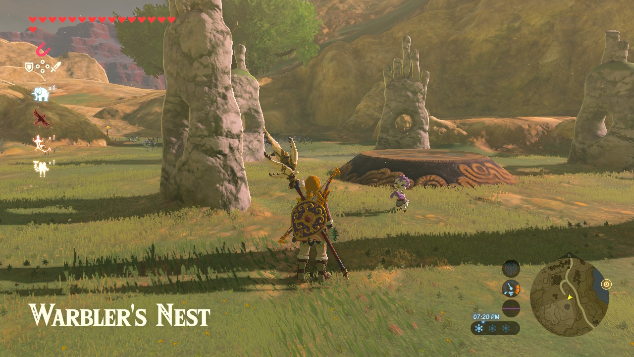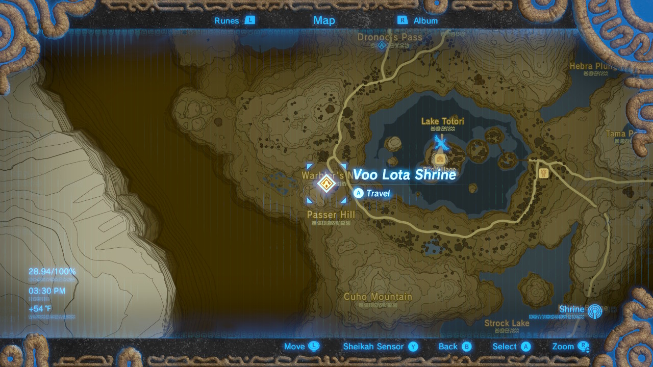 This hidden shrine is located west of Rito Village at Warbler’s Nest, across from Lake Totori. There’s a clearing with several uniquely shaped ruins. The spot is visible from Rito Village. This shrine can’t be activated until after Link completes the Rito Village Divine Beast.