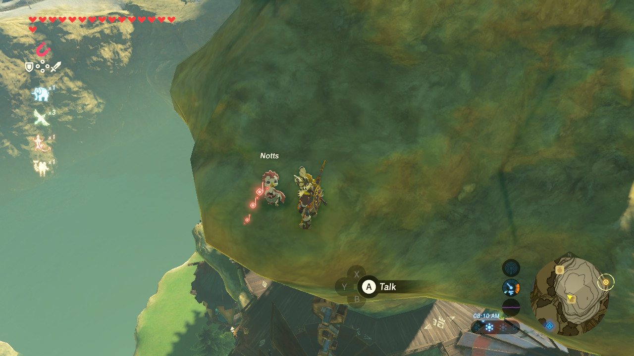 To start the quest, talk to the Rito Villager on the wooden platform right next to Akh Va’quot Shine. She’ll ask you to find a child waiting at Warbler’s Nest. Talk to the child, and she’ll ask Link to find four more Rito children.