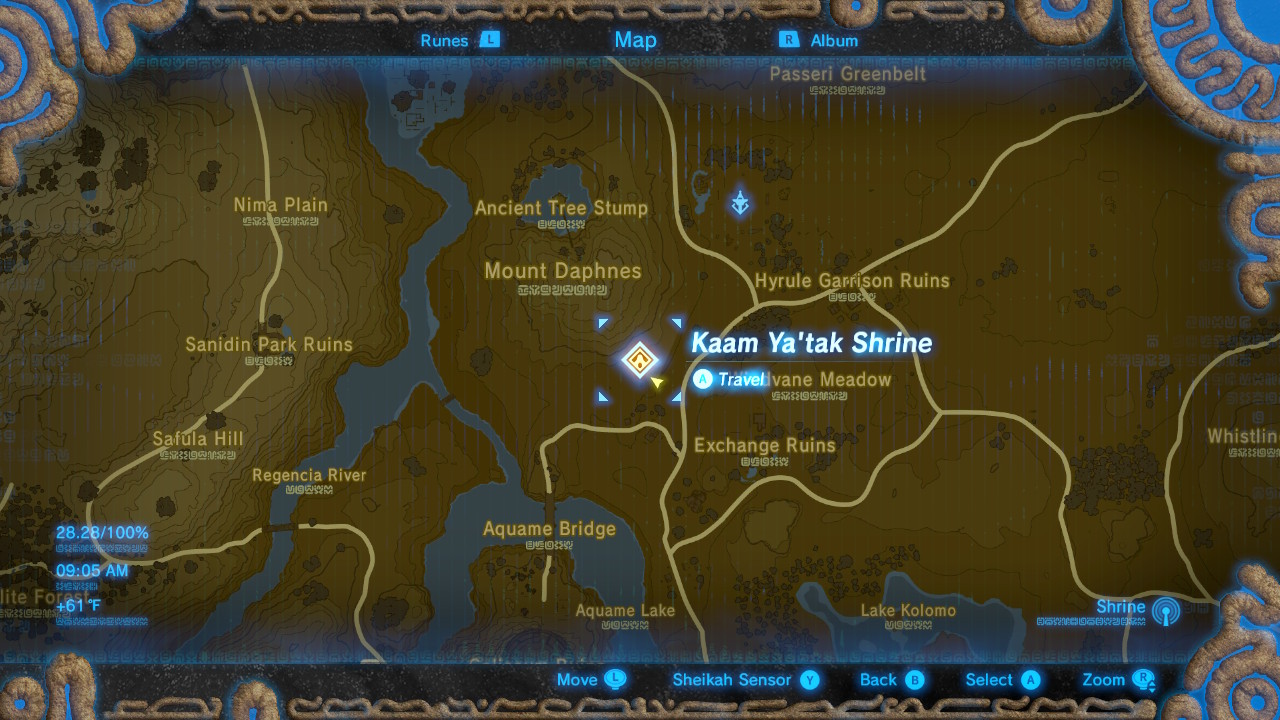Travel north from the Outskirts Stable or look south of the Central Tower. The shrine is nestled on Mount Daphnes, just northwest from the Exchange Ruins. It’s visible from Windvane Meadow.