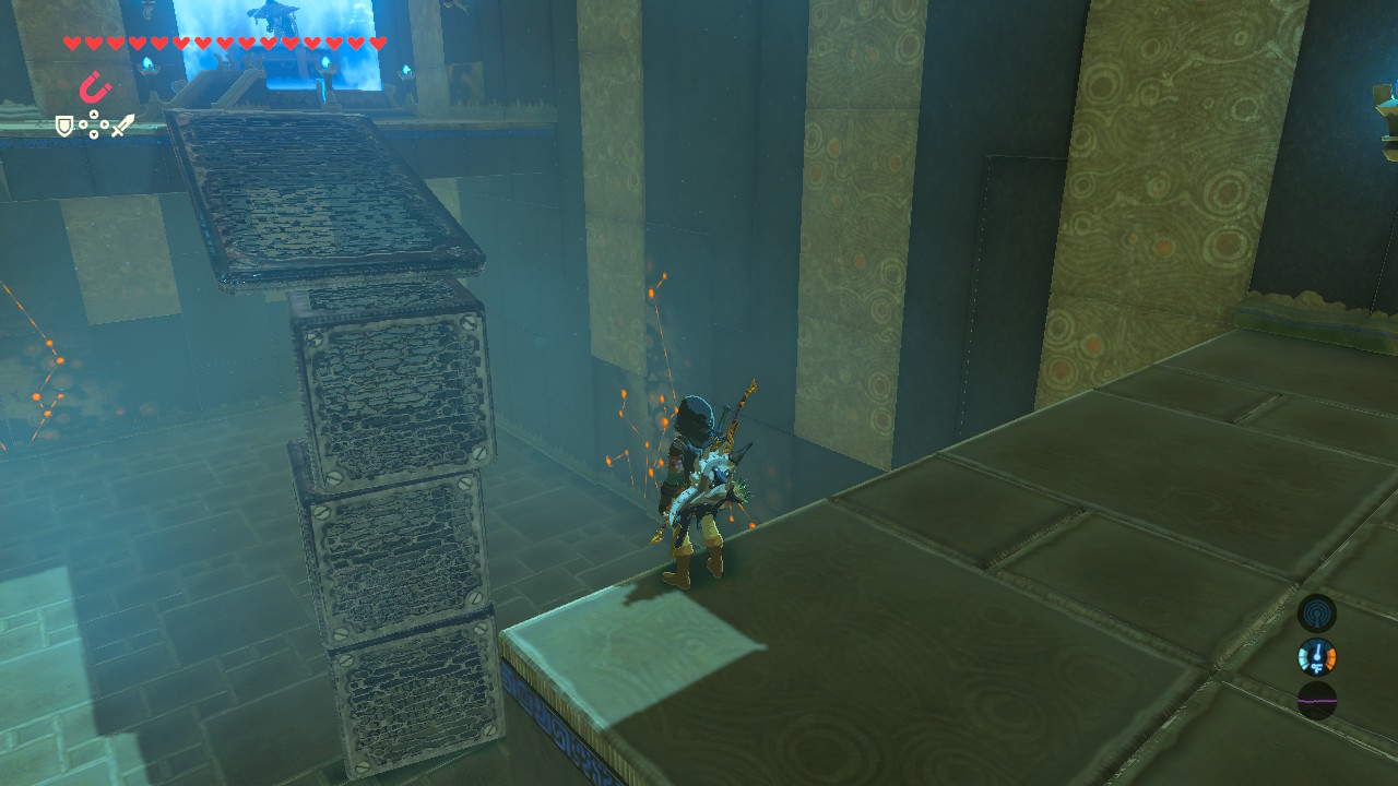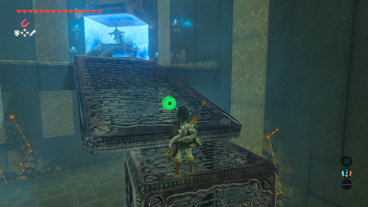 In this shrine, you’ll find three metal blocks. There are three blocks, and all can be climbed. Turn right from the entrance to grab them with Magnesis.