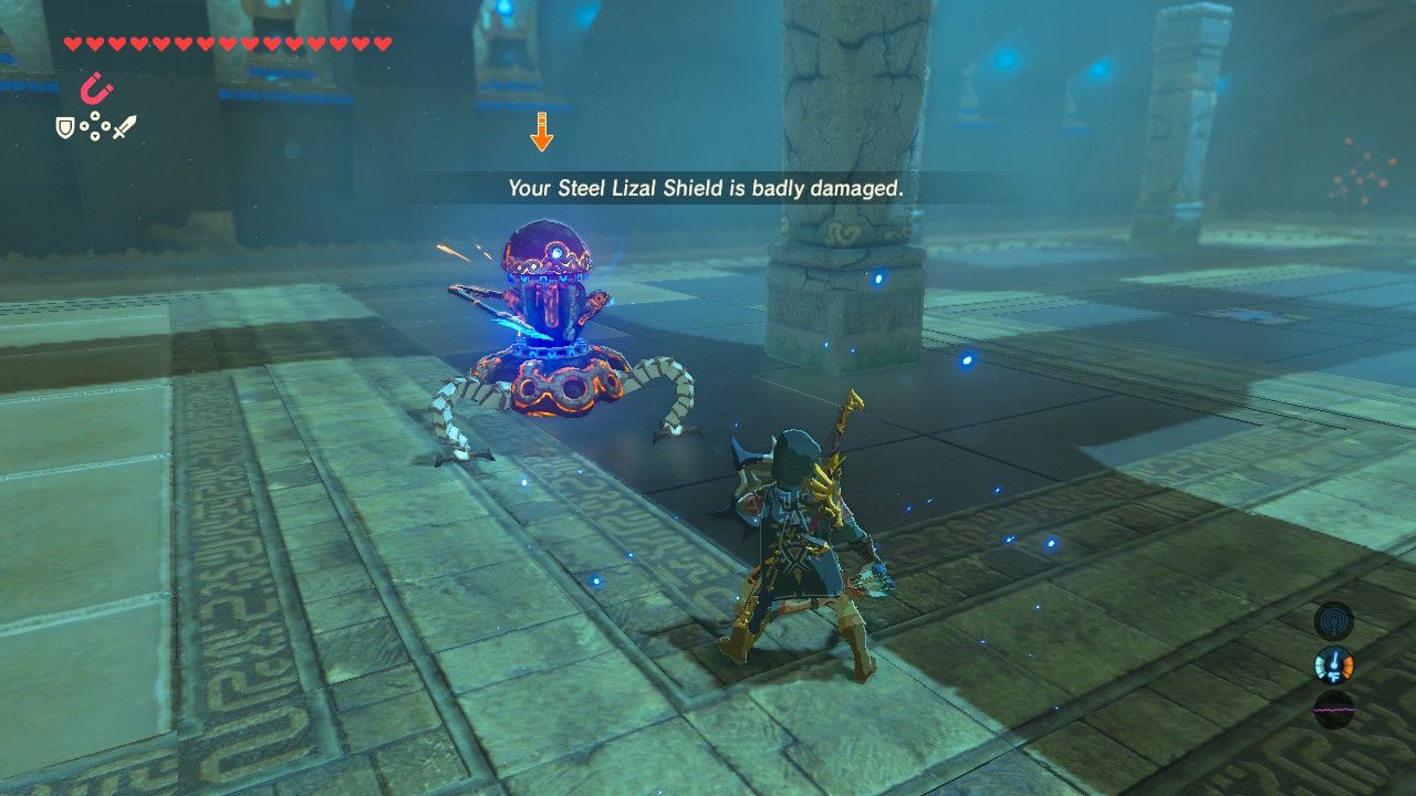For how close the shrine is to Hyrule Castle, the Guardian Scout battle is relatively easy. Even a low-level Link can handle this basic Scout encounter. Simple weapons and a few healing items are all you need.