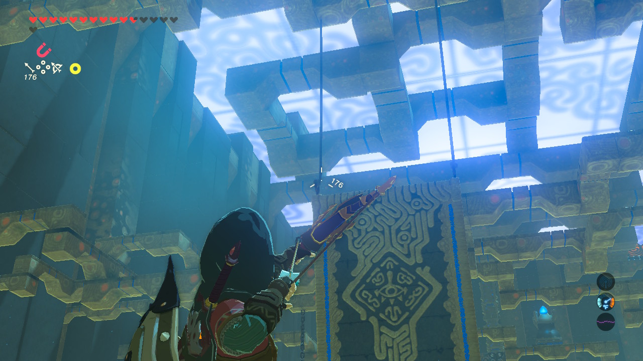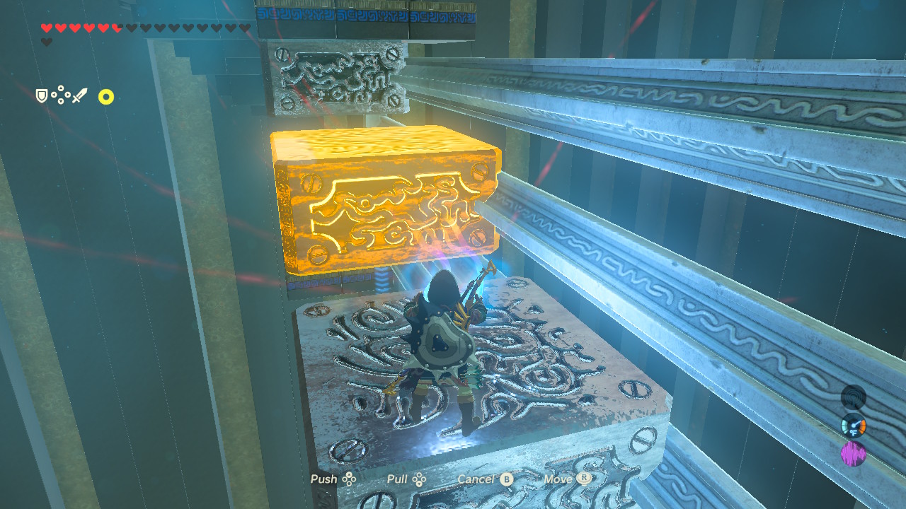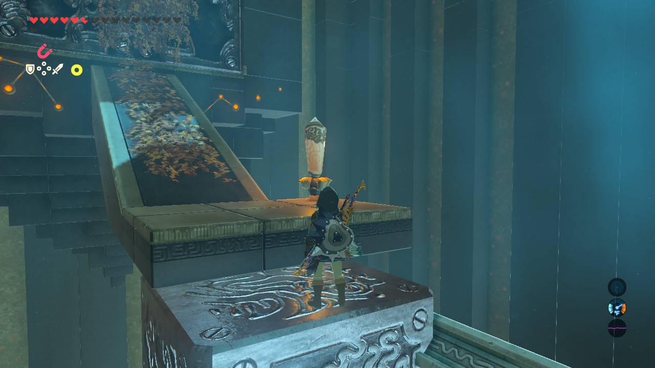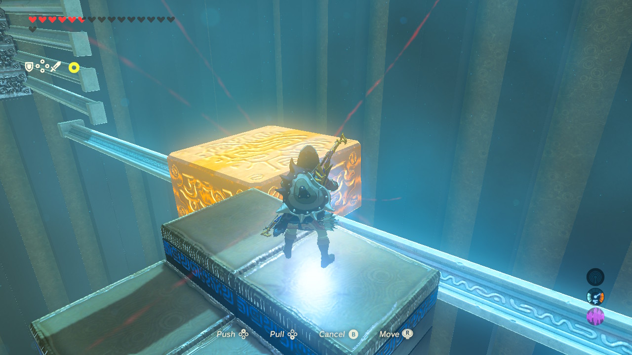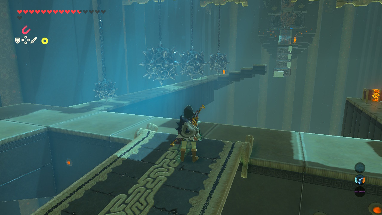 - Optional Chest: Find this hard-to-see chest at the far end of the metal block steps challenge. Create a lower path using Magnesis to get to this rupee chest.