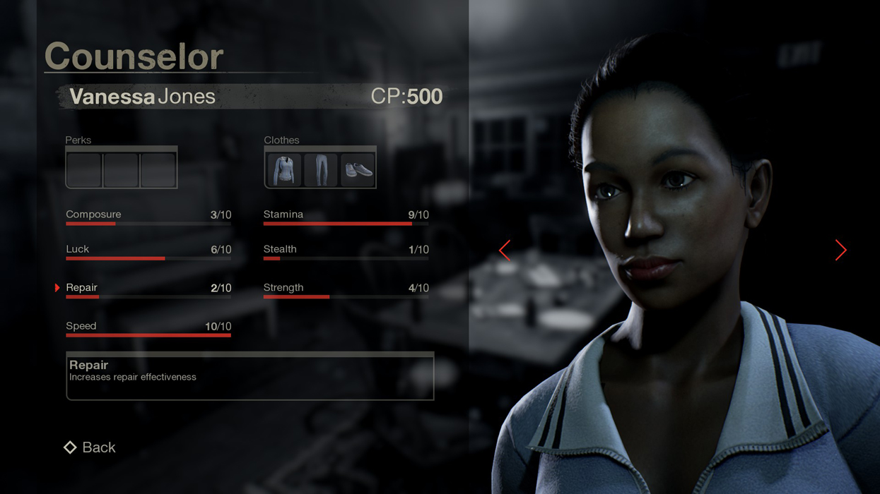 In addition to perks, every counselor has seven stat categories with effectiveness ranging from 1 to 10.