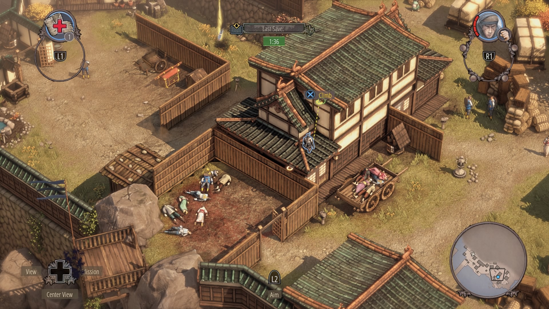Jump down on the opponent below [Square / X] to kill instantly. Press [Cross / A] to pick up the body and hide it in the bushes. Shadow Tactics is a stealth game, and if you want to survive, you’ll need to remain unnoticed – and constantly quicksave.