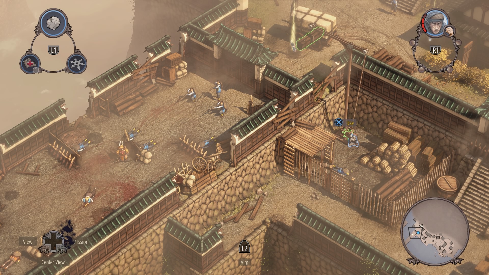 In Shadow Tactics: Blades of the Shogun, you start with Hayato the Shinobi, but you’ll quickly unlock Mugen. There are five characters in total, and every mission features a combination of different heroes you can use to complete your objective. Here, all we have to do is use a cannon to blast open a gate.