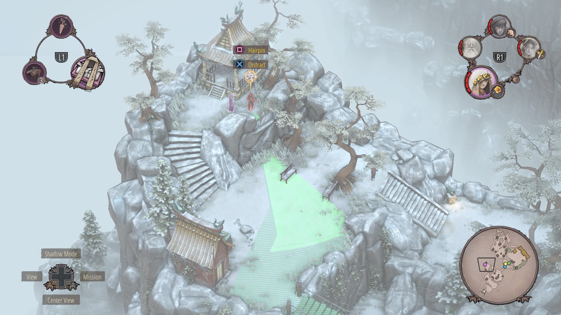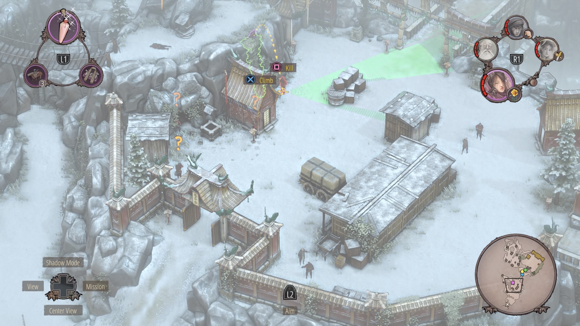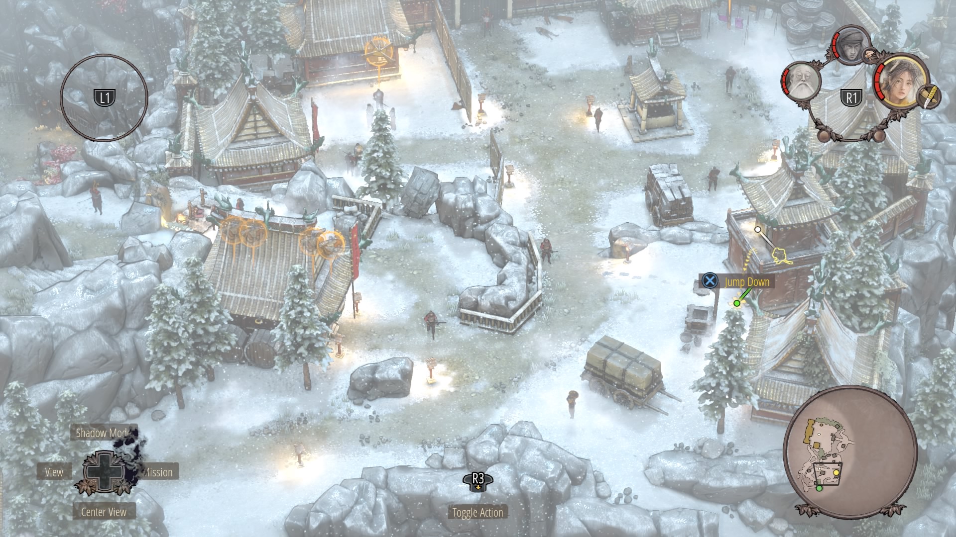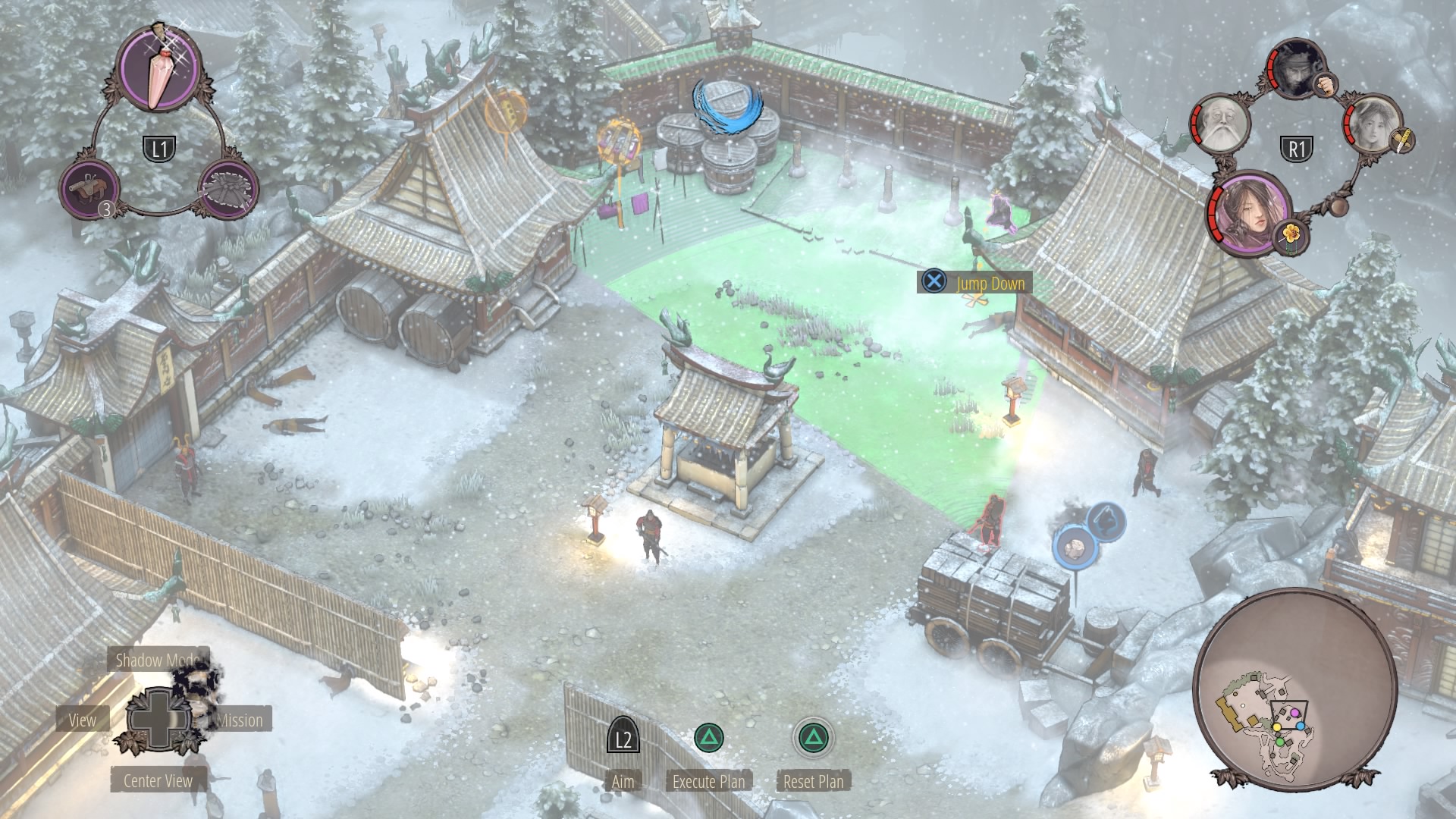 Clearing the Village: To save Aiko, you’ll need to enter the peak village. It’s well-guarded, but there is a way through – on the ramp from the bridge (with the eagle statue) there’s a ledge Yuki / Hayato can jump down to, allowing them to get behind the first Straw Hat watching guard at the village entrance path.