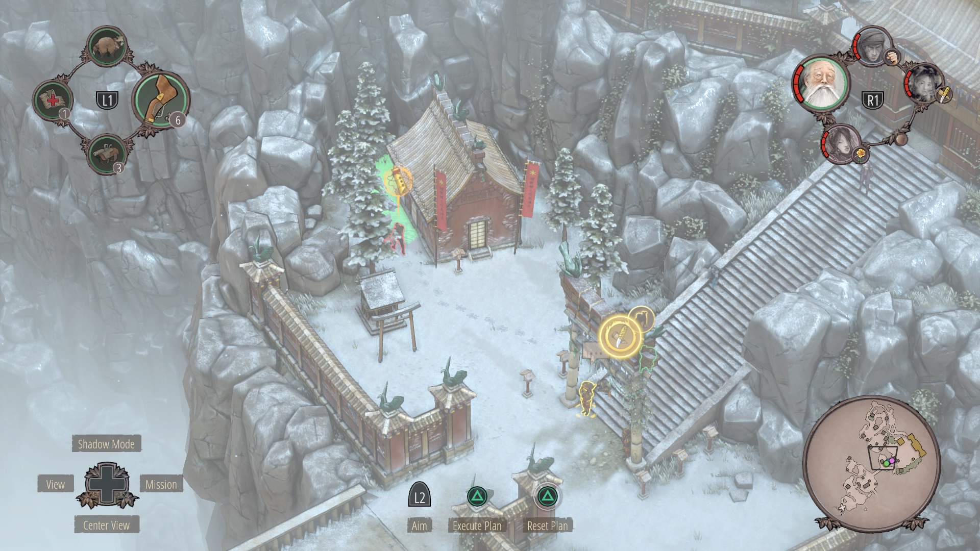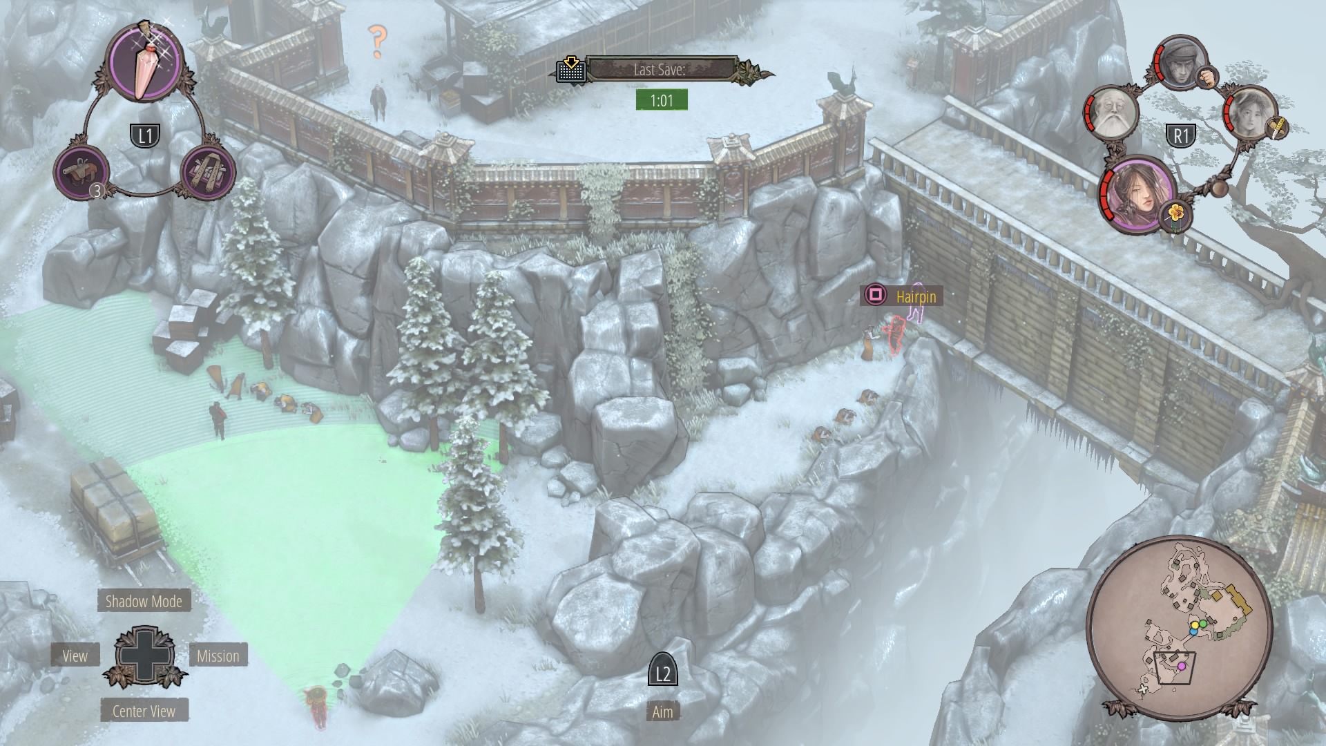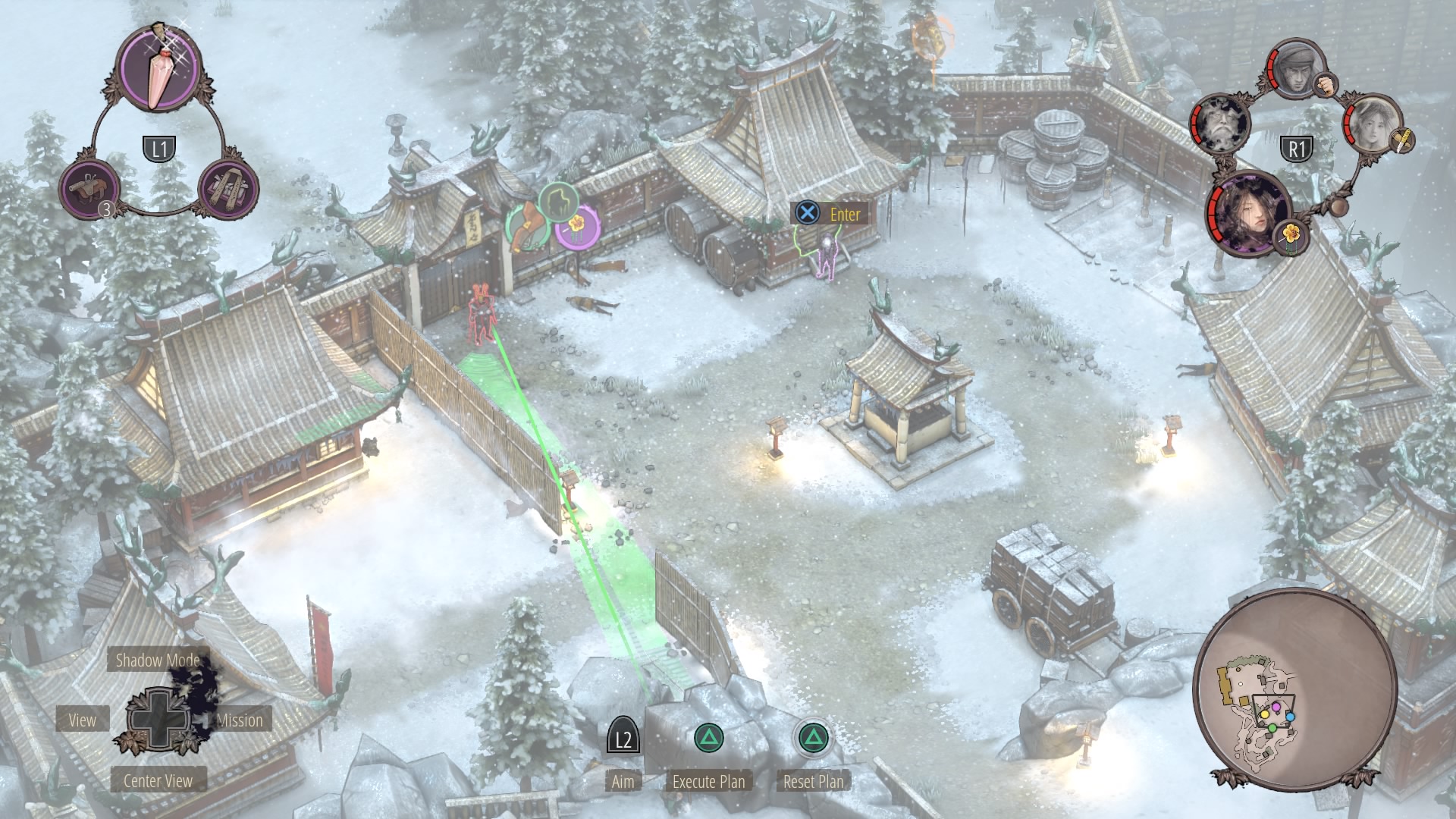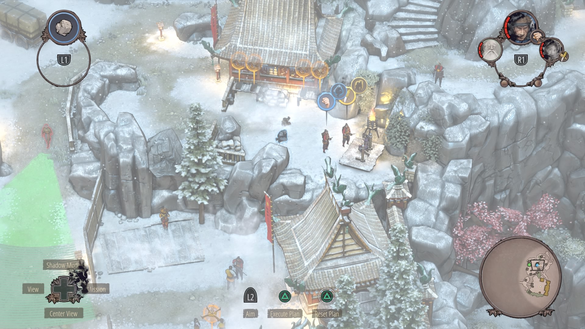 Clearing the Village: To save Aiko, you’ll need to enter the peak village. It’s well-guarded, but there is a way through – on the ramp from the bridge (with the eagle statue) there’s a ledge Yuki / Hayato can jump down to, allowing them to get behind the first Straw Hat watching guard at the village entrance path.