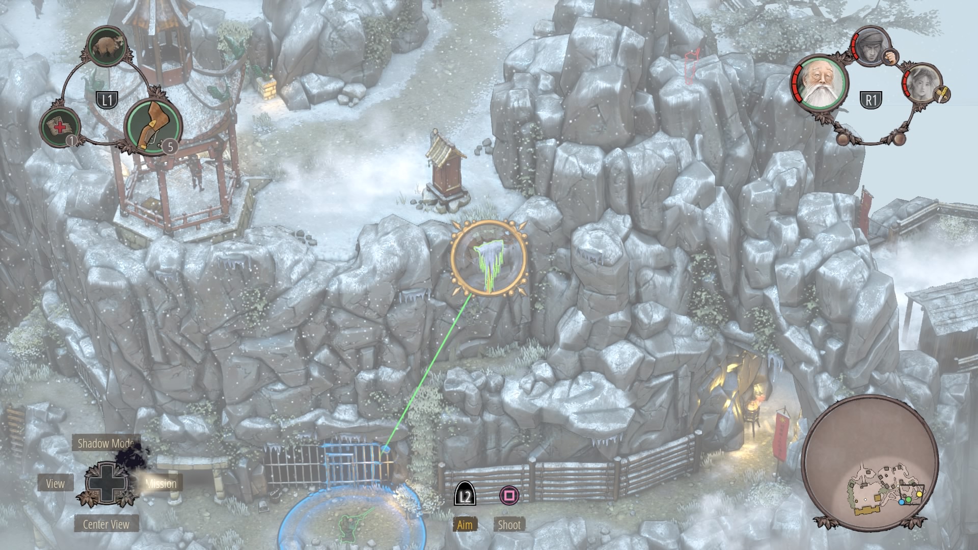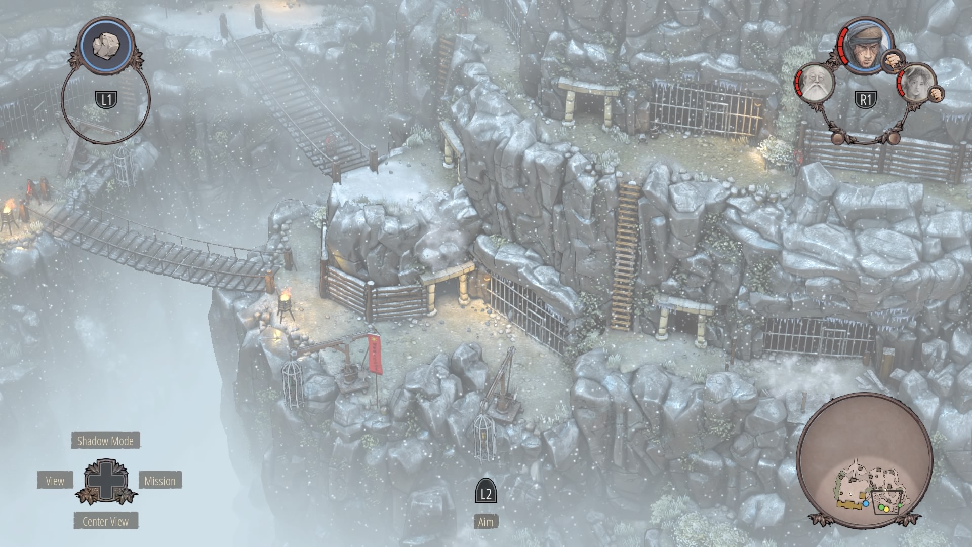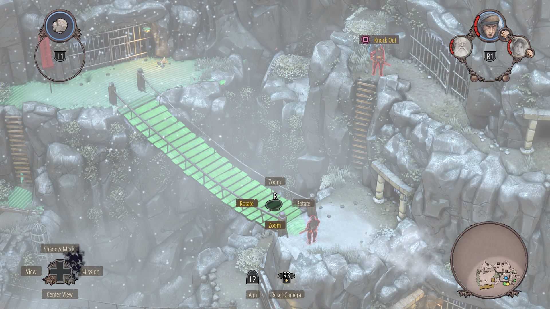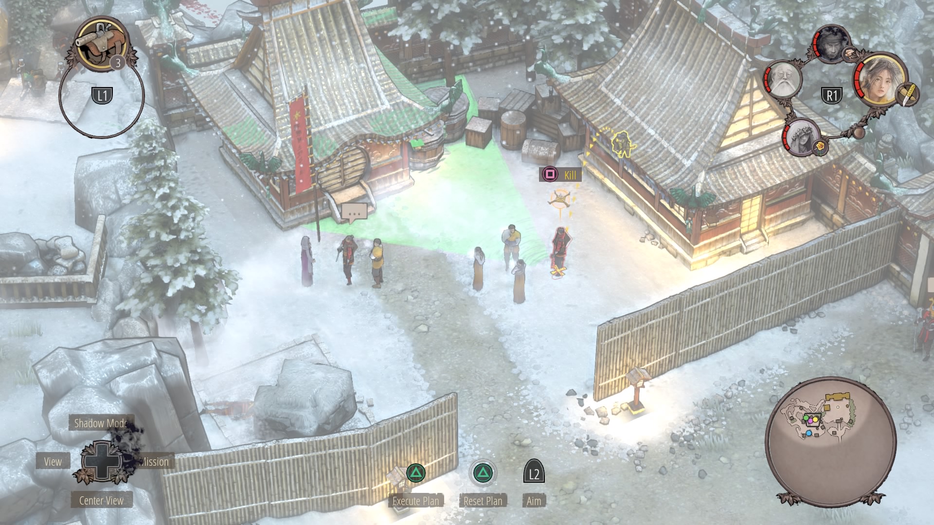 Clearing the Village: To save Aiko, you’ll need to enter the peak village. It’s well-guarded, but there is a way through – on the ramp from the bridge (with the eagle statue) there’s a ledge Yuki / Hayato can jump down to, allowing them to get behind the first Straw Hat watching guard at the village entrance path.
