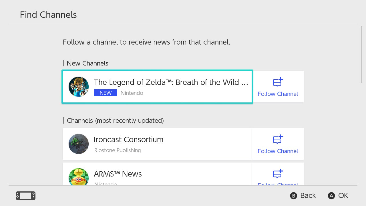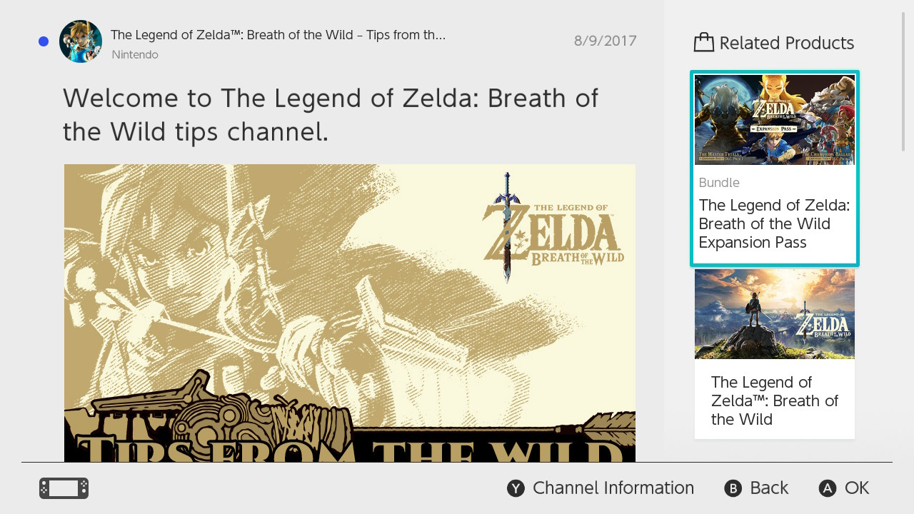 - Select the “The Legend of Zelda: Breath of the Wild” Channel.