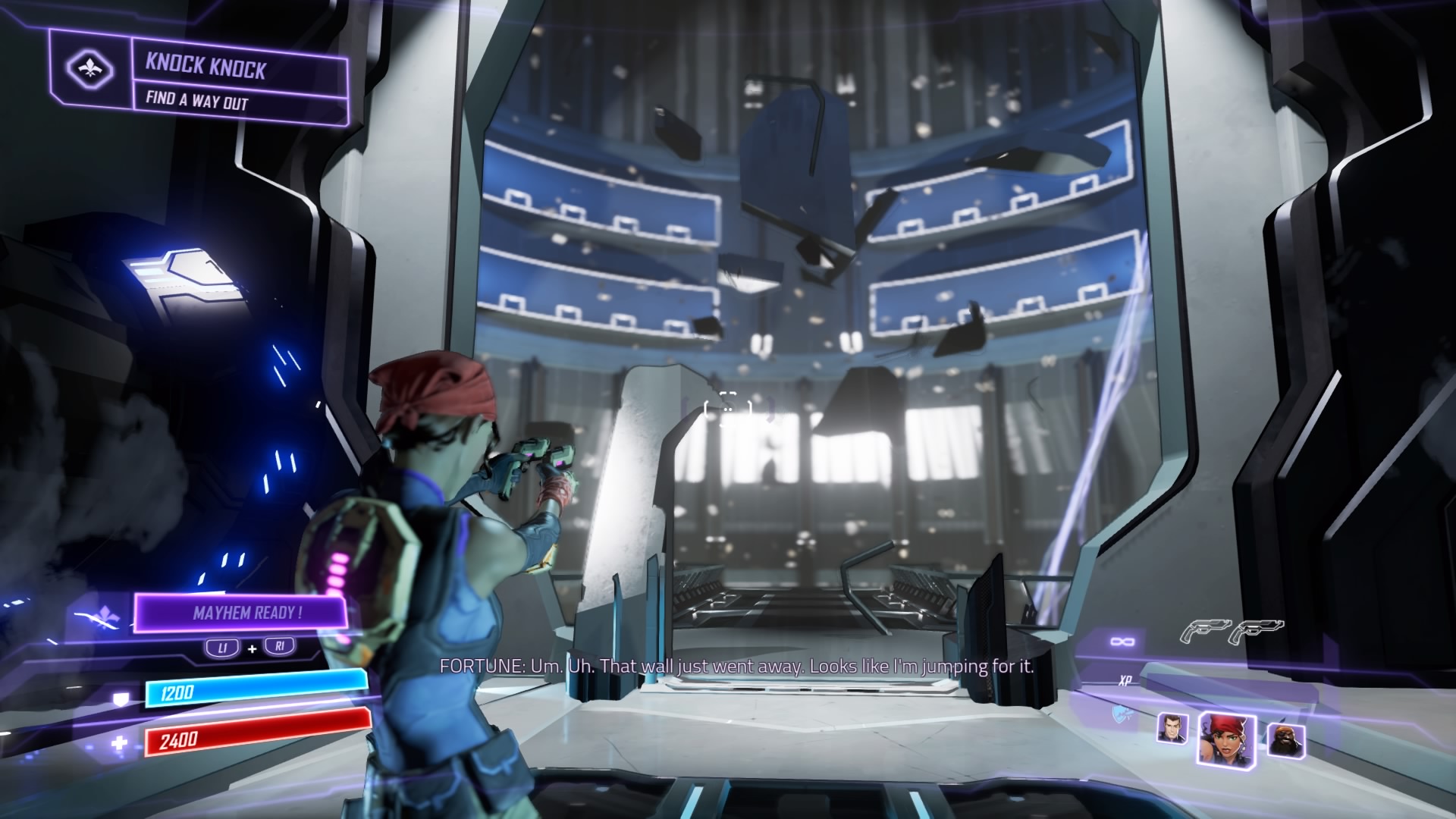 Grab the Mayhem Fleur as you exit to fill the current character’s Mayhem meter and revive any downed agents. Look for these when fighting to stay on your toes in dangerous situations.