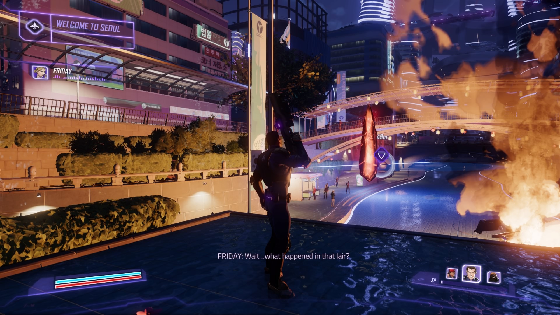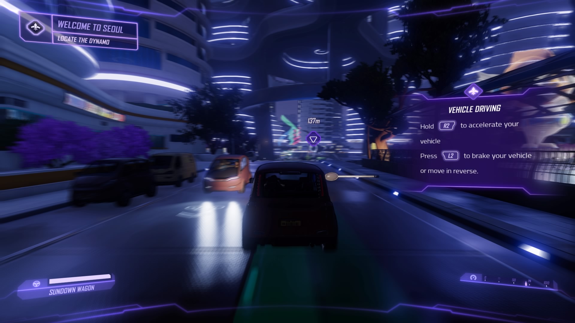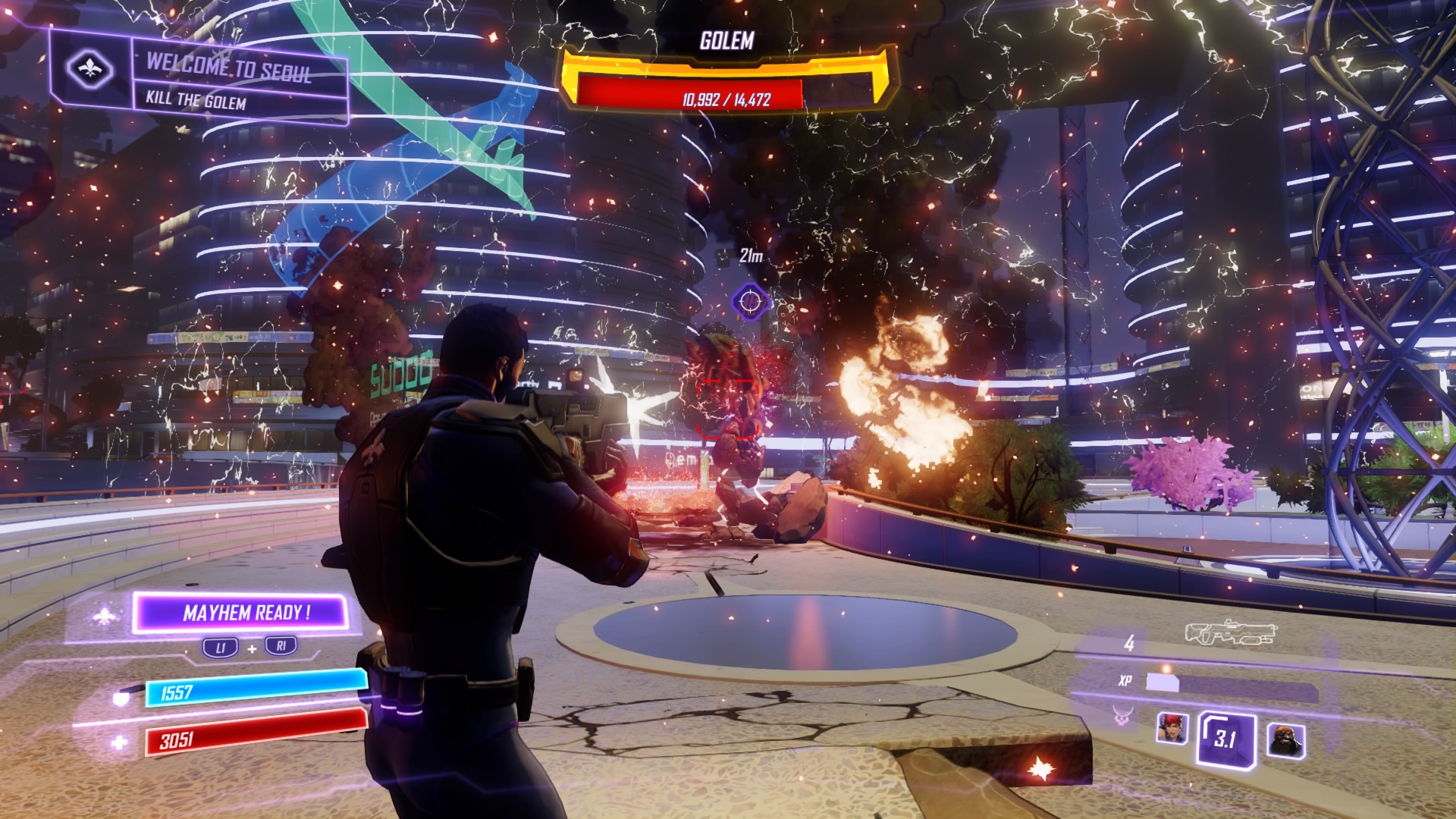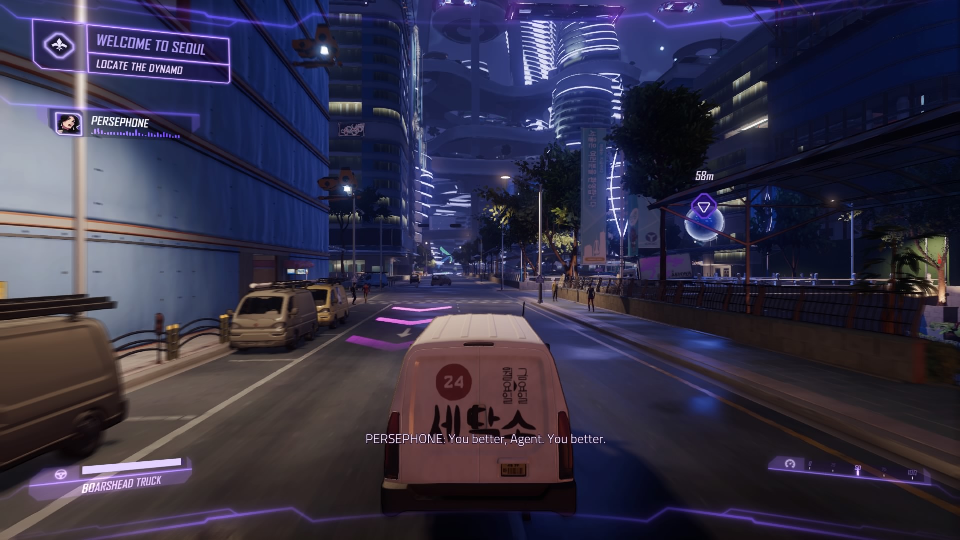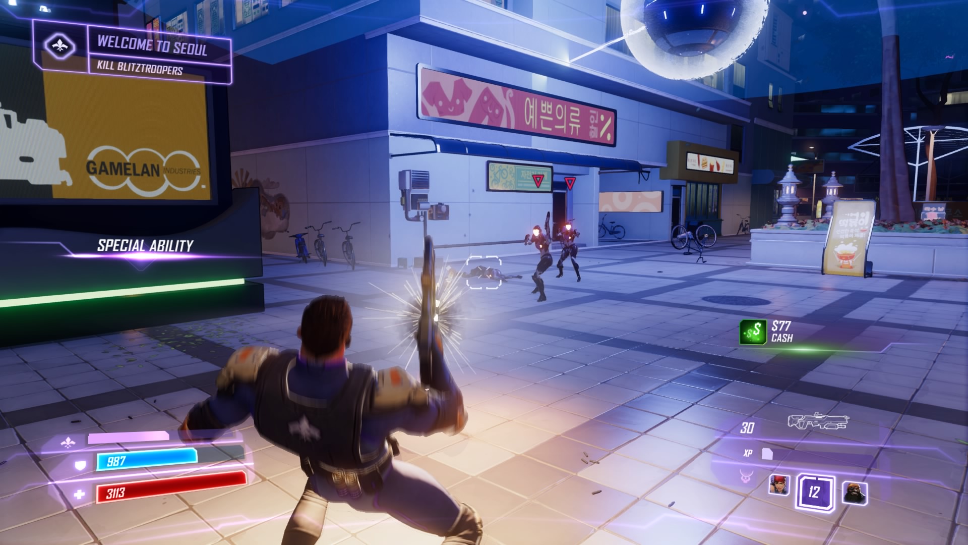 Here’s a quick mission. Follow the Zero Point Dynamo in the city of Seoul – even when it moves. Use your new traversal skills – you have a triple-jump and air-dashes for a reason. You can also a steal a car. In the alley, you’ll encounter a new enemy type.