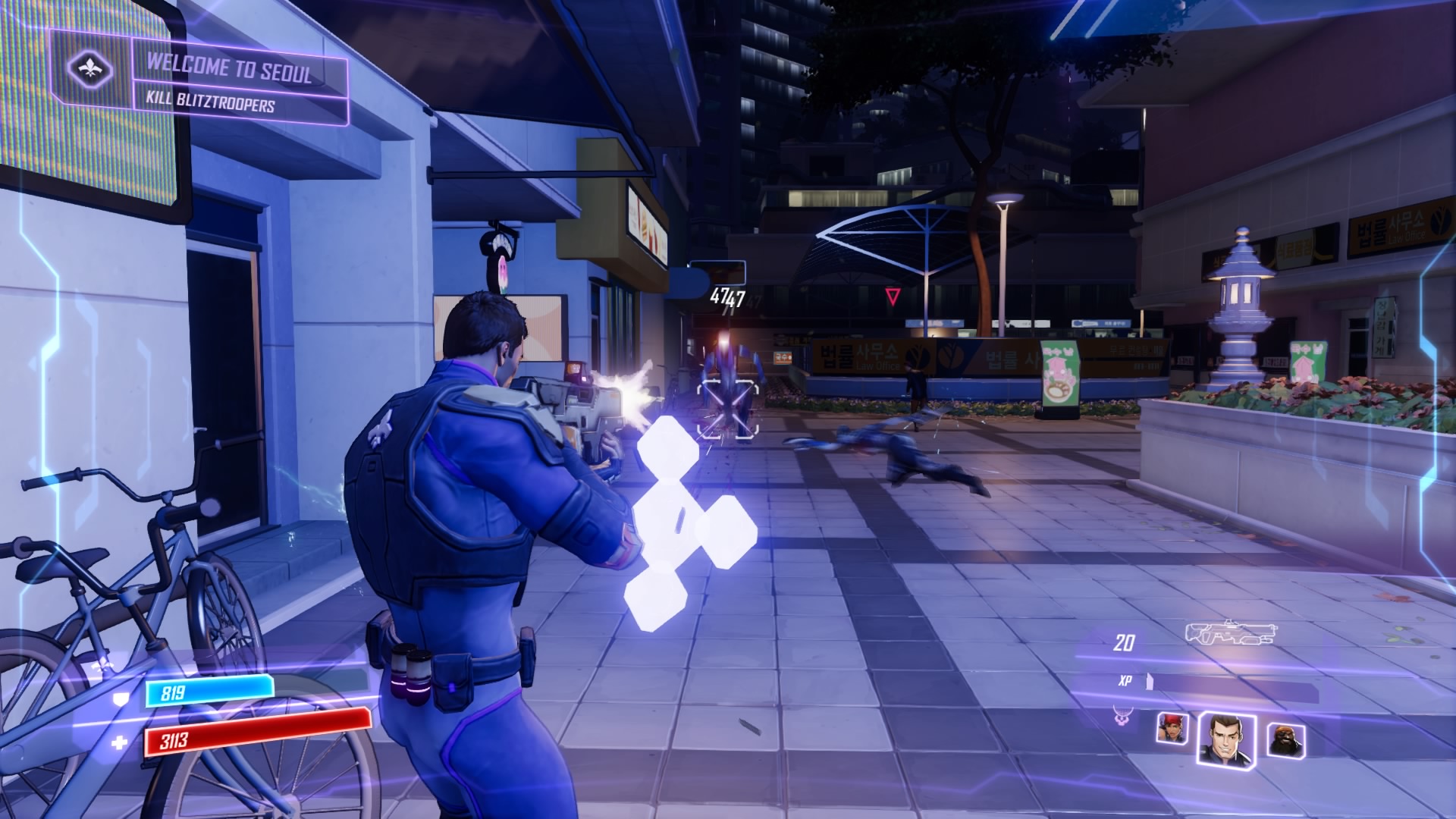 REWARD: For completing this mission, you’ll also unlock an Upgrade Core. These can be collected by completing Wreck Room challenges, or after collecting 10 shards in Seoul. Use them to unlock core upgrades – each agent has three.