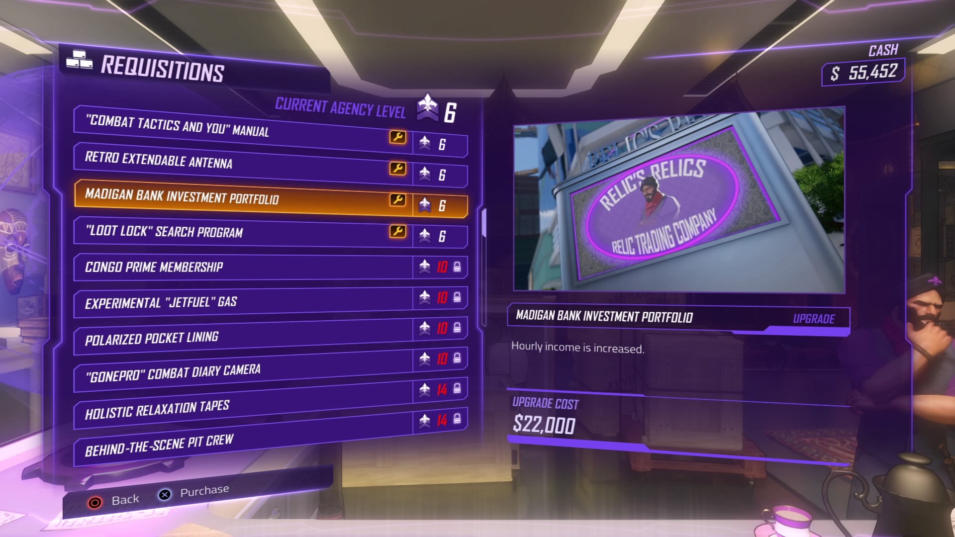 - How To Increase Income: Requisitions unlocks at ARK Level 6. Access the “Upgrade Agency” -> Purchase “Madigan Bank Investment Portfolio” to increase your hourly income. The upgrade costs $22,000.