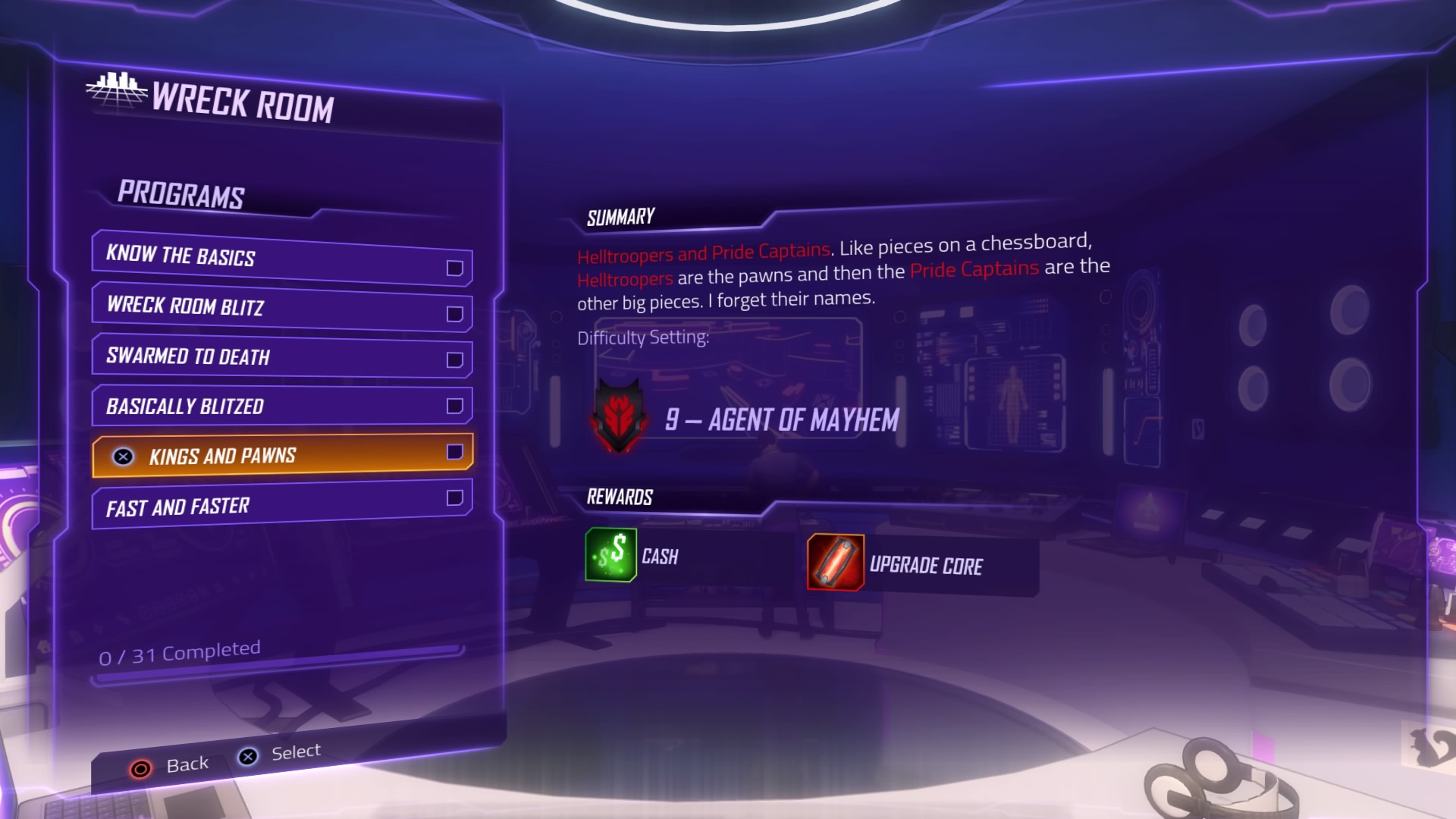 - Complete Wreck Room challenges with Upgrade Core rewards.