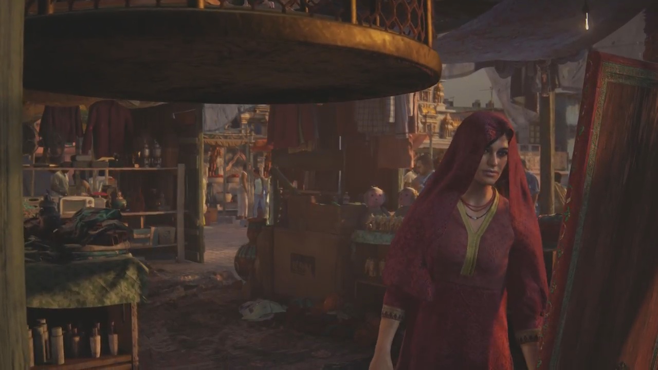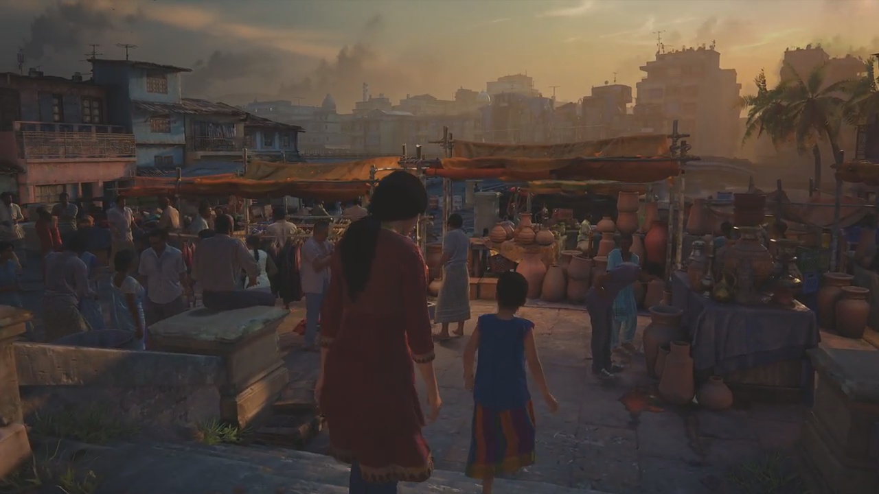The start of Uncharted: The Lost Legacy will have our protagonist Chloe in a market, waiting for a specific truck to come rolling on by. At the market, you’ll meet a little girl named Meenu who will tag along being your guide.