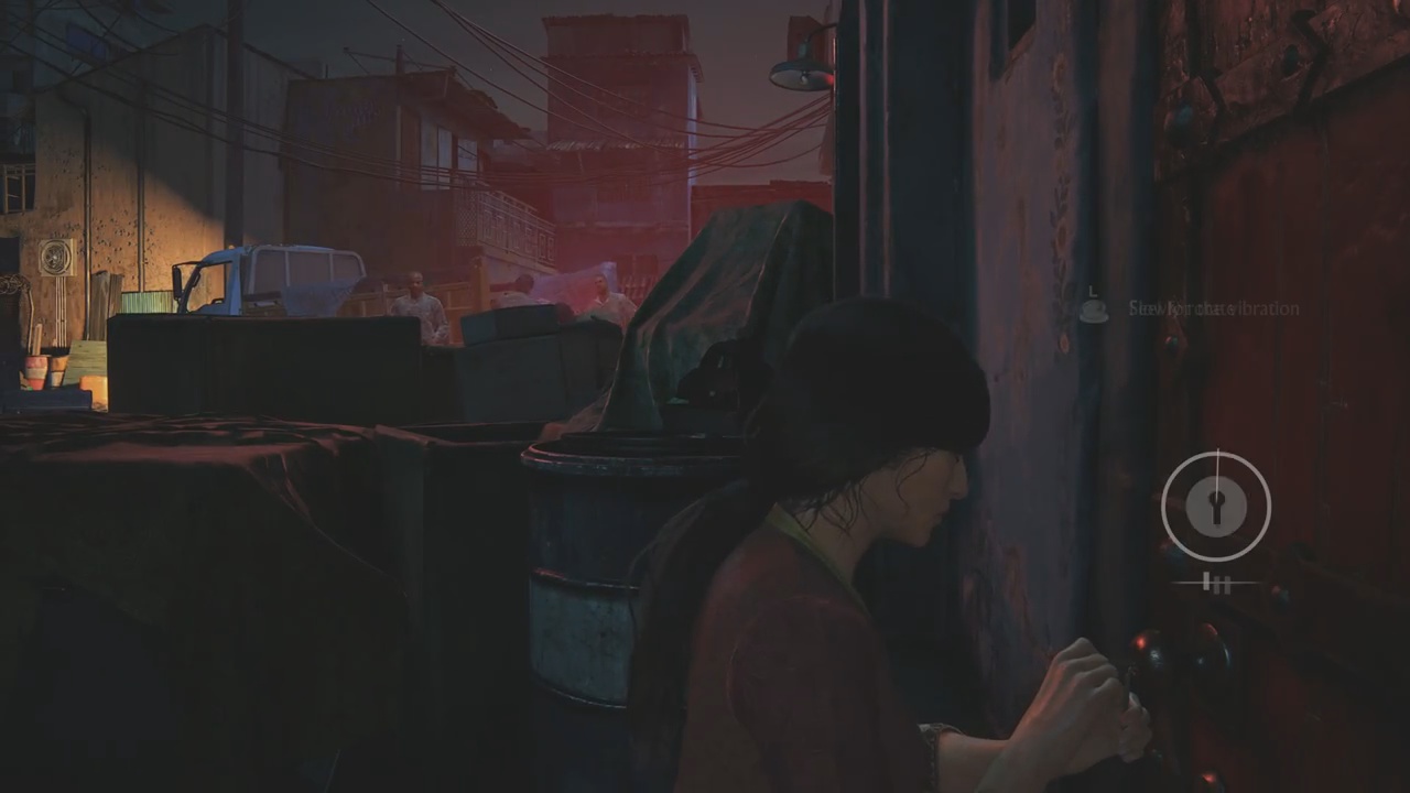 This opening will take players directly towards the red door, though you’ll have to be careful as there will be a group of insurgents nearby. Chloe can still make it to the door while the group is by their caravan, though she will have to use a lockpick in order to gain access before the insurgents heads towards her immediate location.