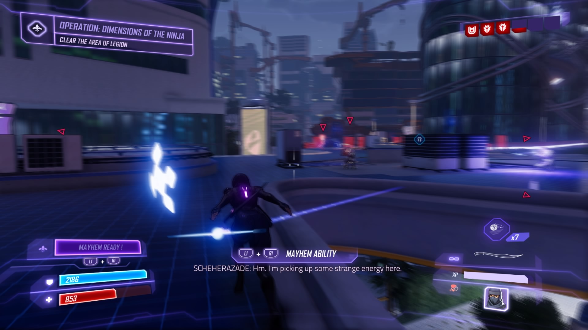 The last agent you can unlock in Agents of Mayhem is one of the most unique. Instead of using a big gun like everyone else, Scheherazade is a ninja and uses a three-string combo sword to cut down enemies. When aiming, she throws daggers, and her melee throws a teleporting sword that instantly transmits Scheherazade to the targeted enemy’s location.