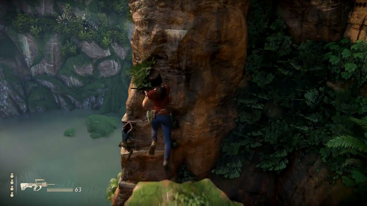 Nadine will then jump across a gap onto another mountain ledge so follow her lead. It will be on this mountain that the insurgency will take notice of your arrival and begin to shoot down at you. You can fire up at any soldiers that peek their head over the edge.