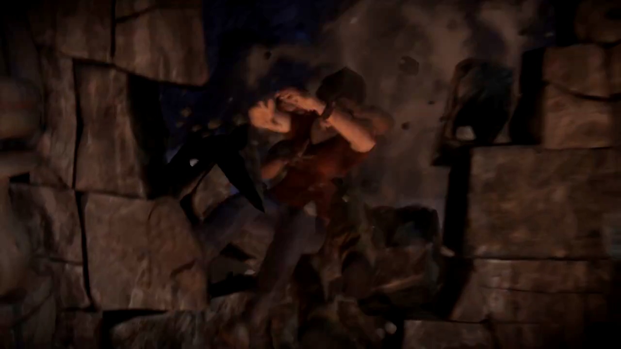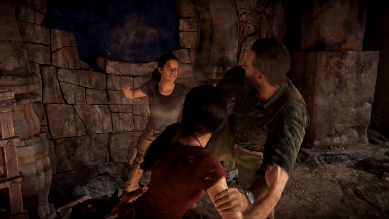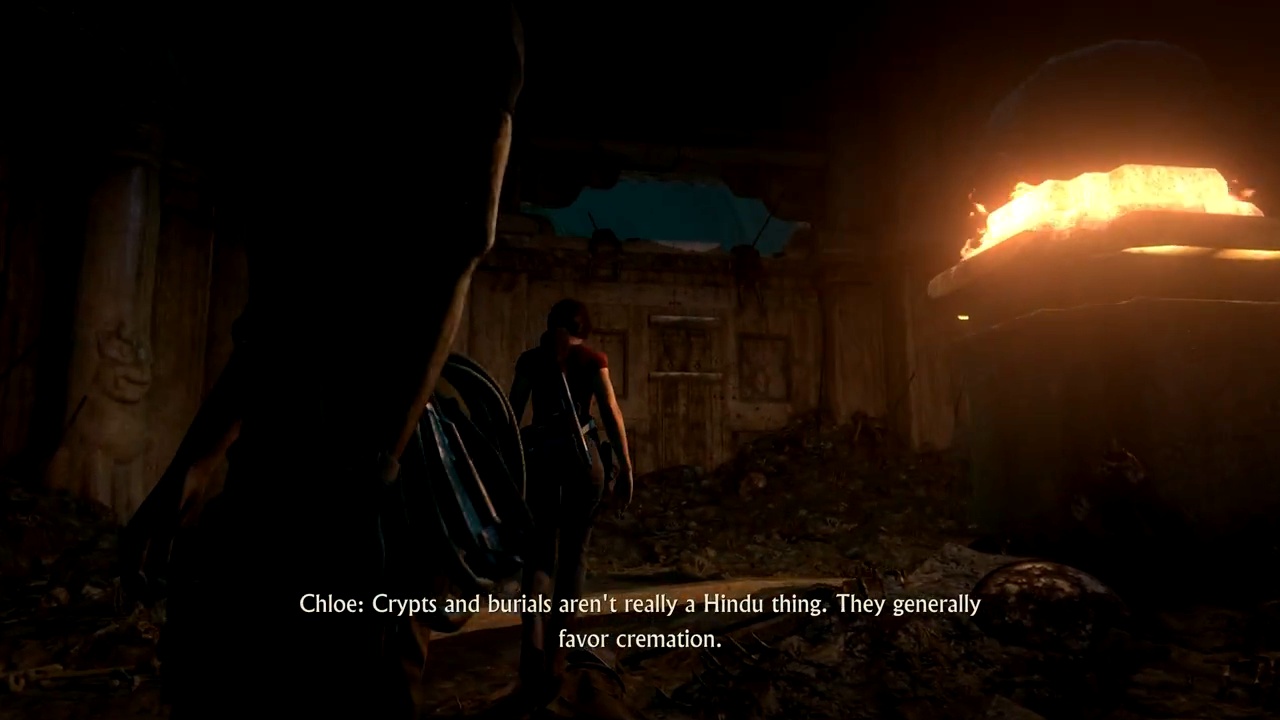Eventually, Chloe and Nadine will reach a wooden door to bust through where they will fall down a hole and into a cavern. Progress through the cavern area and you’ll eventually come to a room where there is a small broken opening to a door. Climb through it to trigger a cutscene.