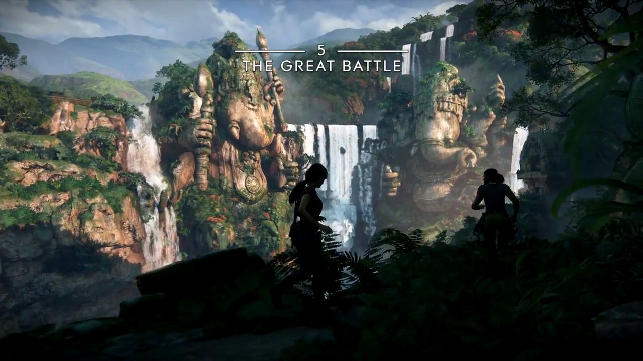 Your first goal in Chapter 5 The Great Battle is to reach the Ganesha Statue so head to the fortress and cross the stone gate. Luckily, Nadine will help find pathways if you’re stuck from the start, though for the most part, once you reach the area with the giant statues and waterfalls, you won’t have to explore for a pathway.