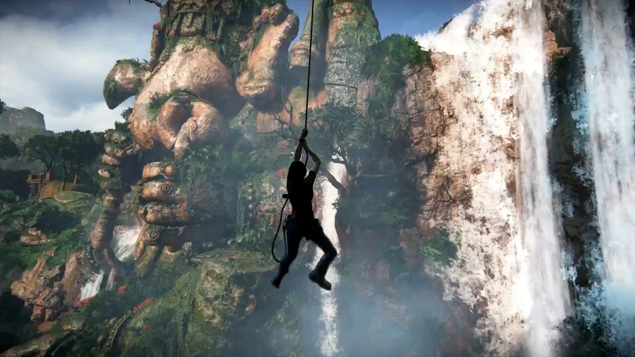 Eventually, Chloe and Nadine will make their way onto one of the giant statues itself. You’ll start out by swinging over to a hand and from there can climb up the statue.