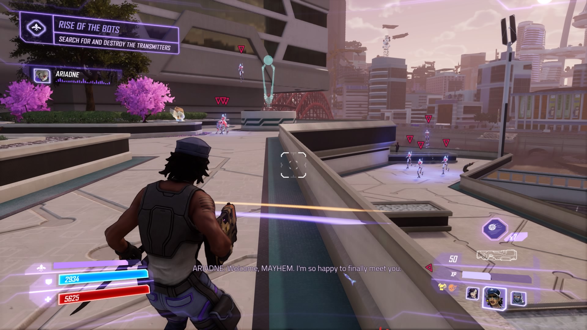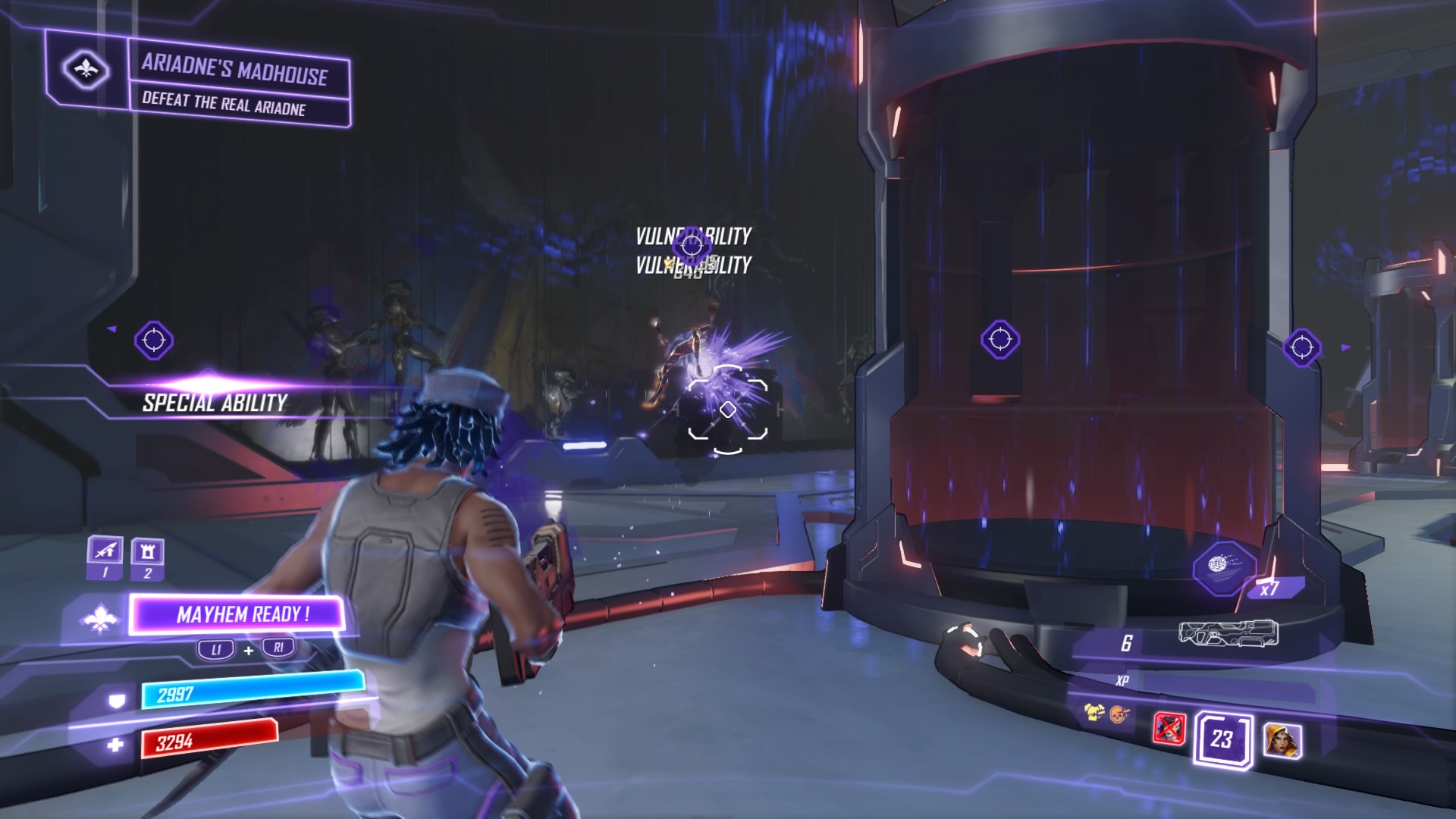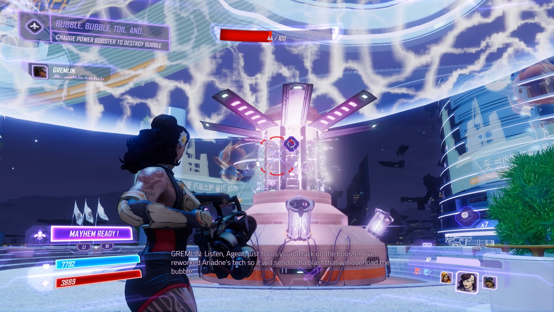 The evil Ariadne is on the prowl, and she’s the most unpredictable of Dr. Babylon’s lieutenants. She’s got a scheme to steal the minds of Seoul’s top scientists, and only the Agents of Mayhem can stop her. Gear up and prepare for a tough fight — these missions don’t start out too tough, but the final battle against Ariadne is one of the most challenging battles to survive in the entire game.