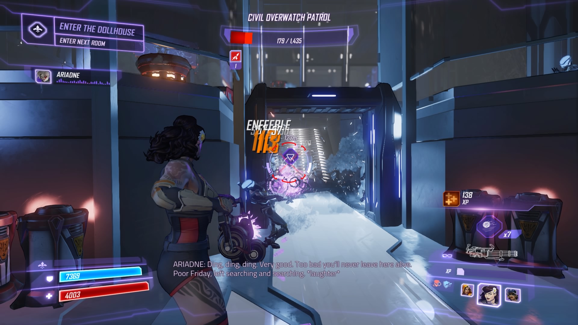 Unfortunately, Ariadne was able to complete her upload. She’s stolen all the TTX scientists’ brains! To save them, you’ll need to track down Ariadne and defeat her.