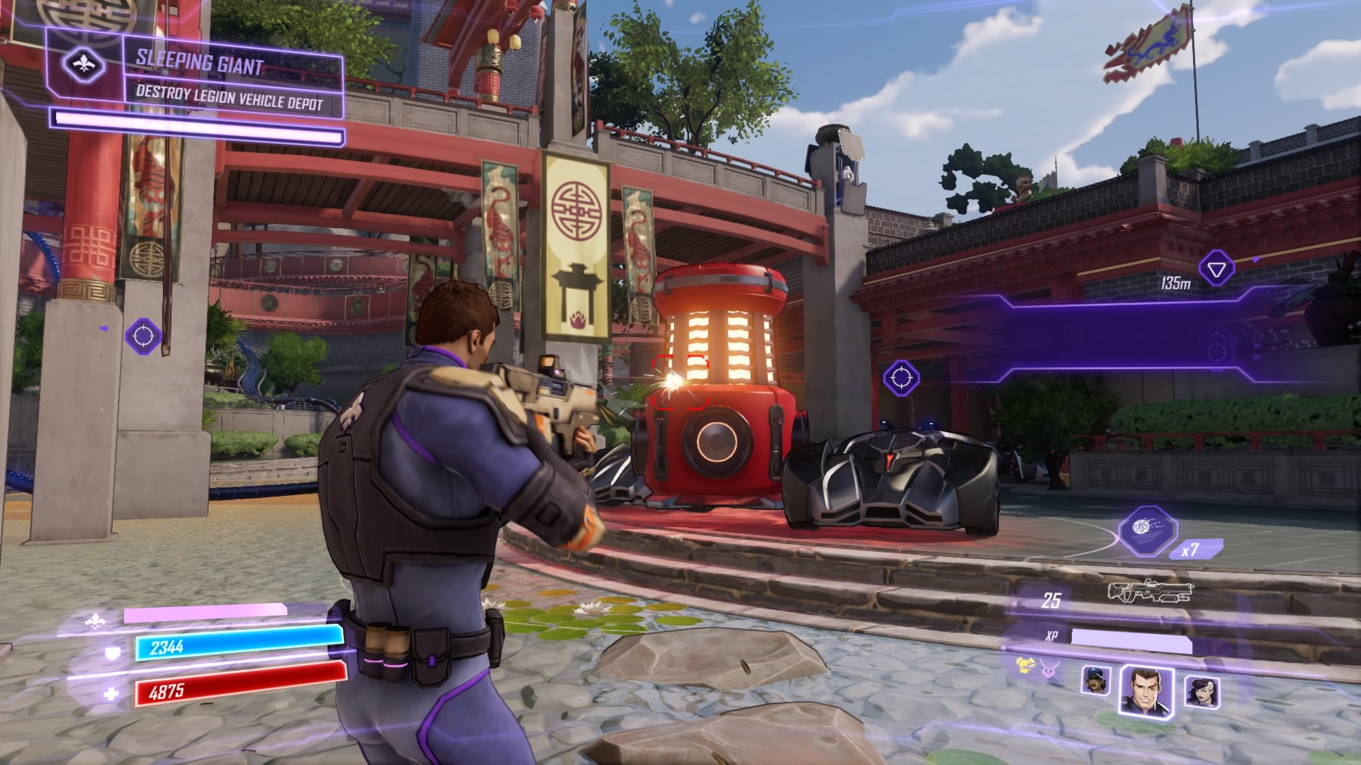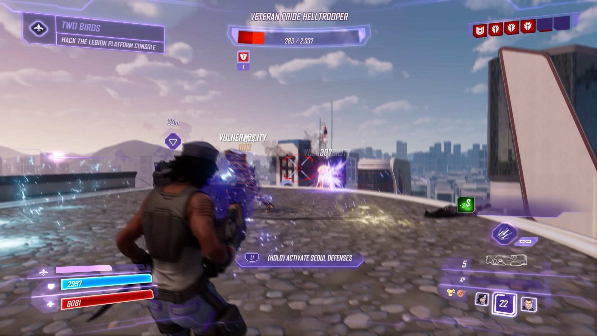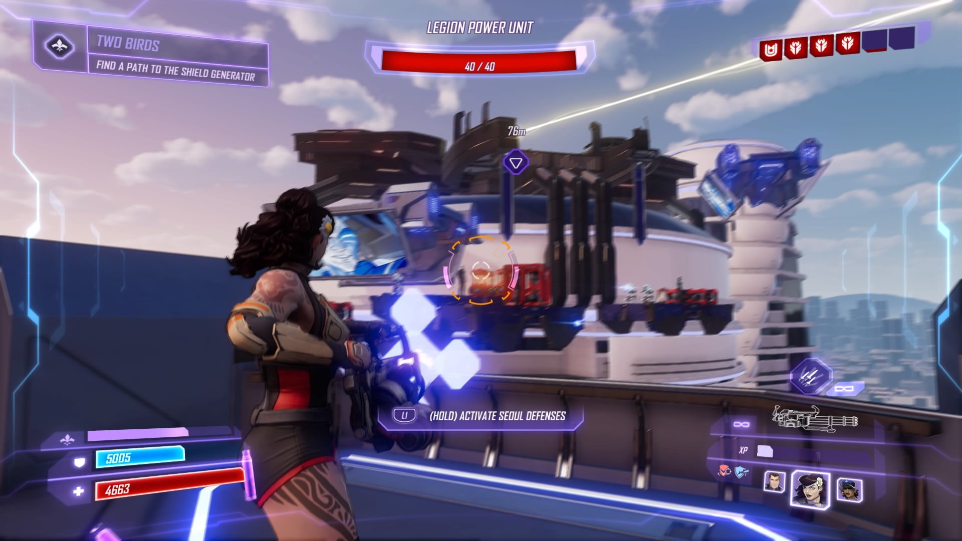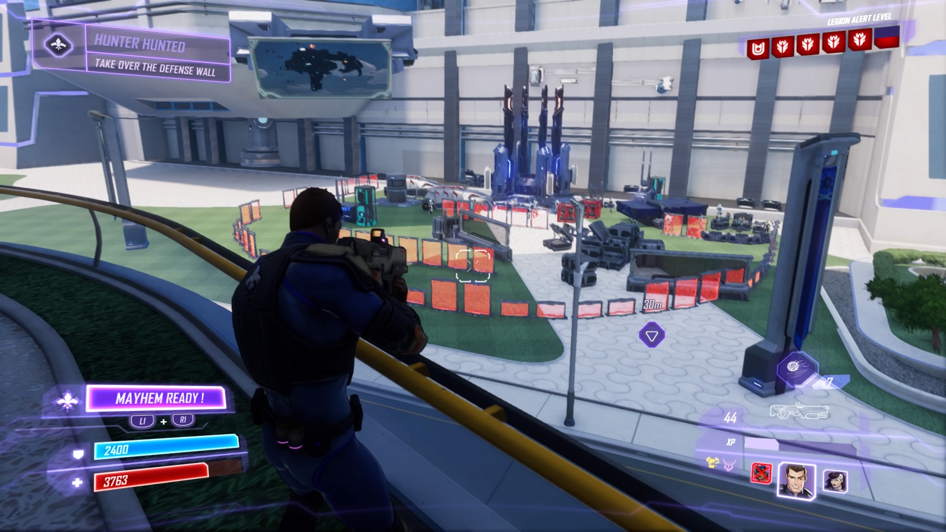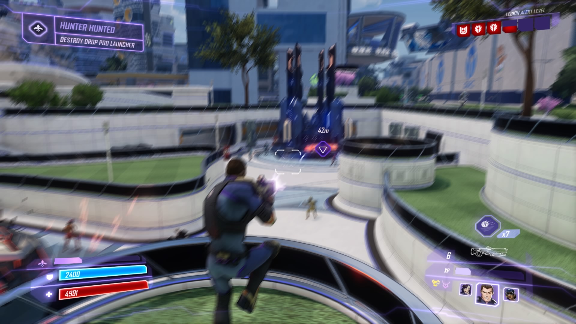 Move to the first waypoint and deal with the first waves of LEGION soldiers. Dr. Babylon summons an upgrade space laser weapon from the sky. Dodge around the blasts and keep moving! You won’t have to fight too many enemies at once. Not yet anyway.