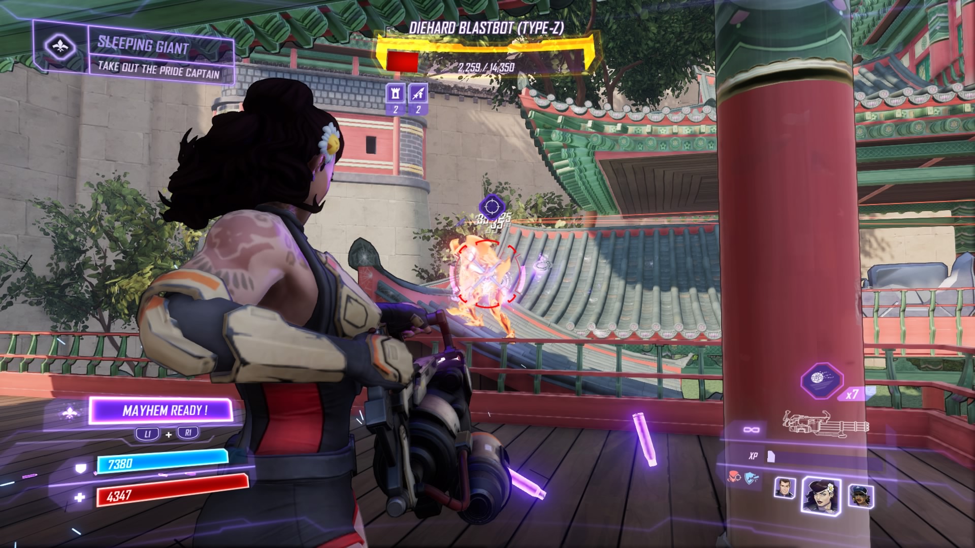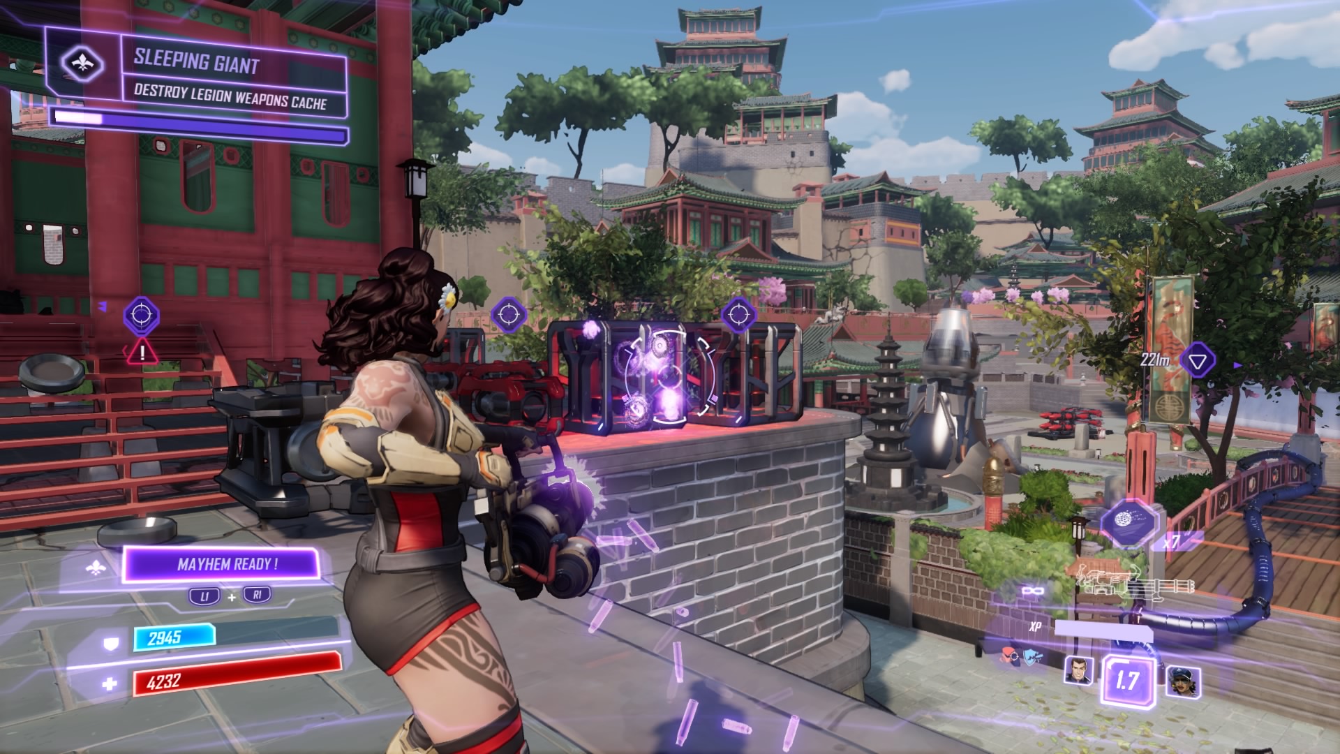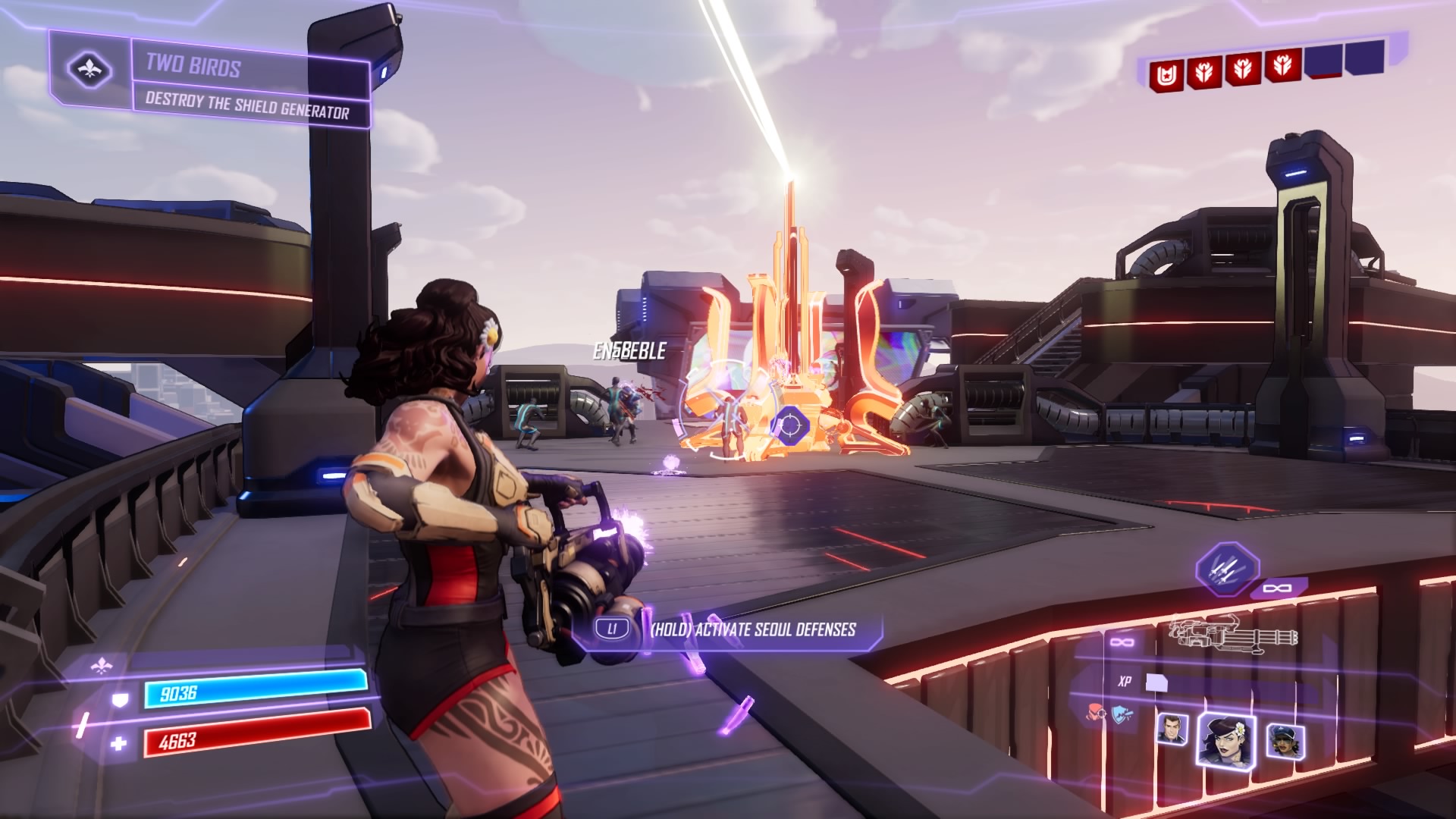 Hollywood’s grenade special is extremely good against objects. Watch out for the turrets on the right side of the temple – take them out one-by-one with Braddock’s AP Rounds. When both stockpiles are destroyed, move to the center to destroy the network infrastructure. There are two powerful turrets in the center – use the structure in the center to separate them and destroy each solo.