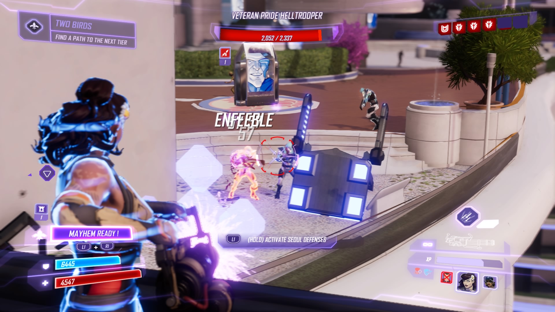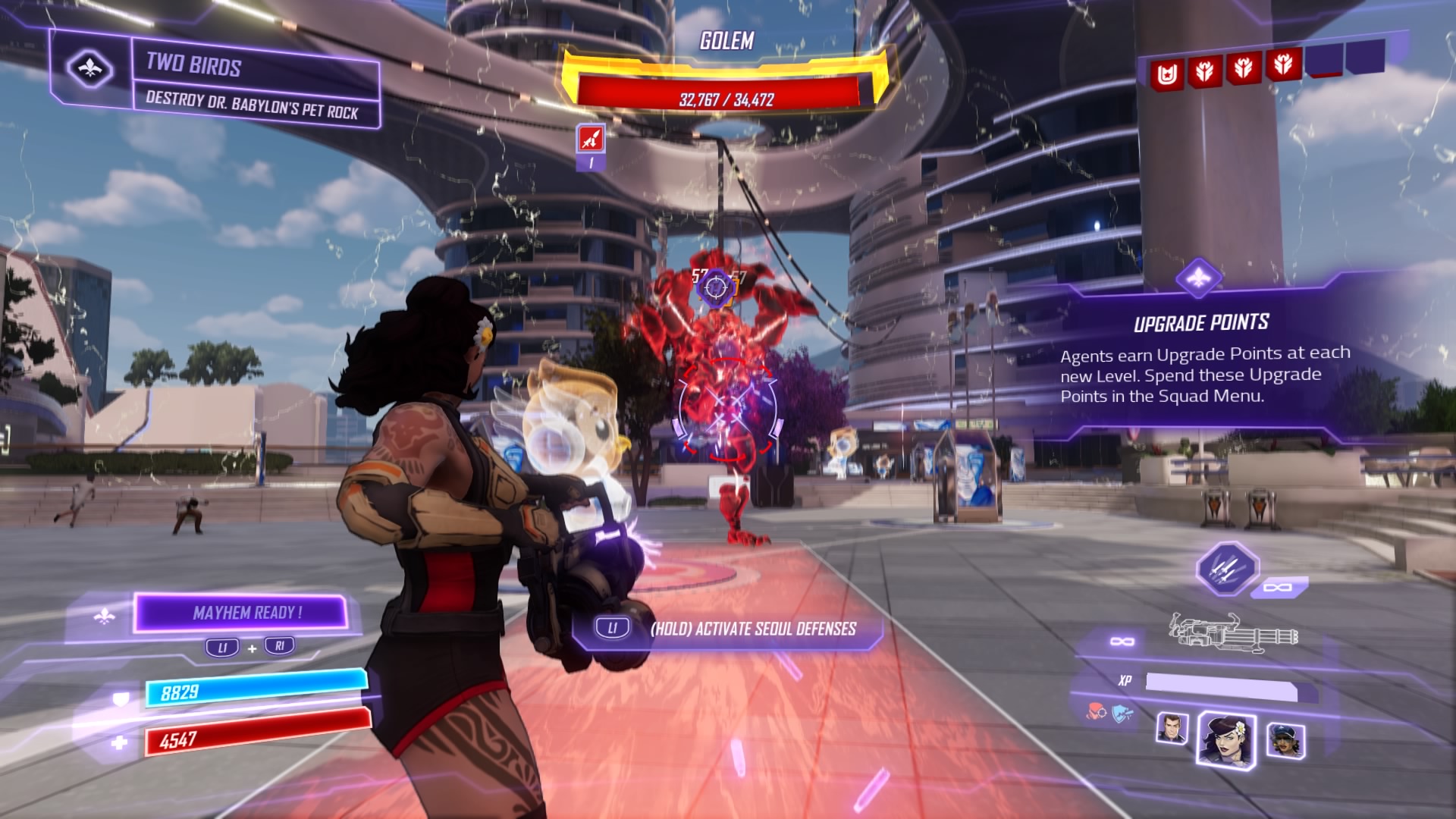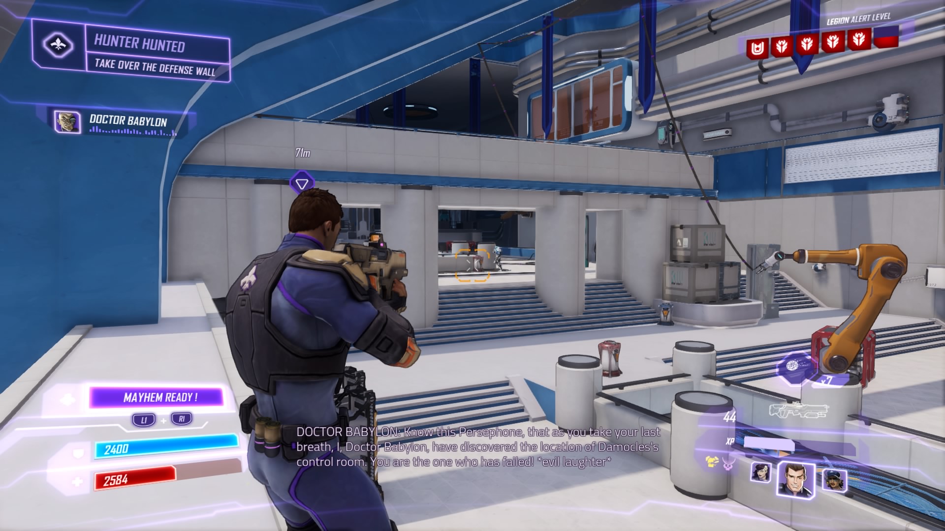 When the turrets are down, destroy the three security terminals, defeat the Tanktrooper that appears, and use the final terminal to save the ARK. Time to hunt down Dr. Babylon – he’s found Damocles’ control room, but the Agents of Mayhem can still end his reign of terror is Seoul.