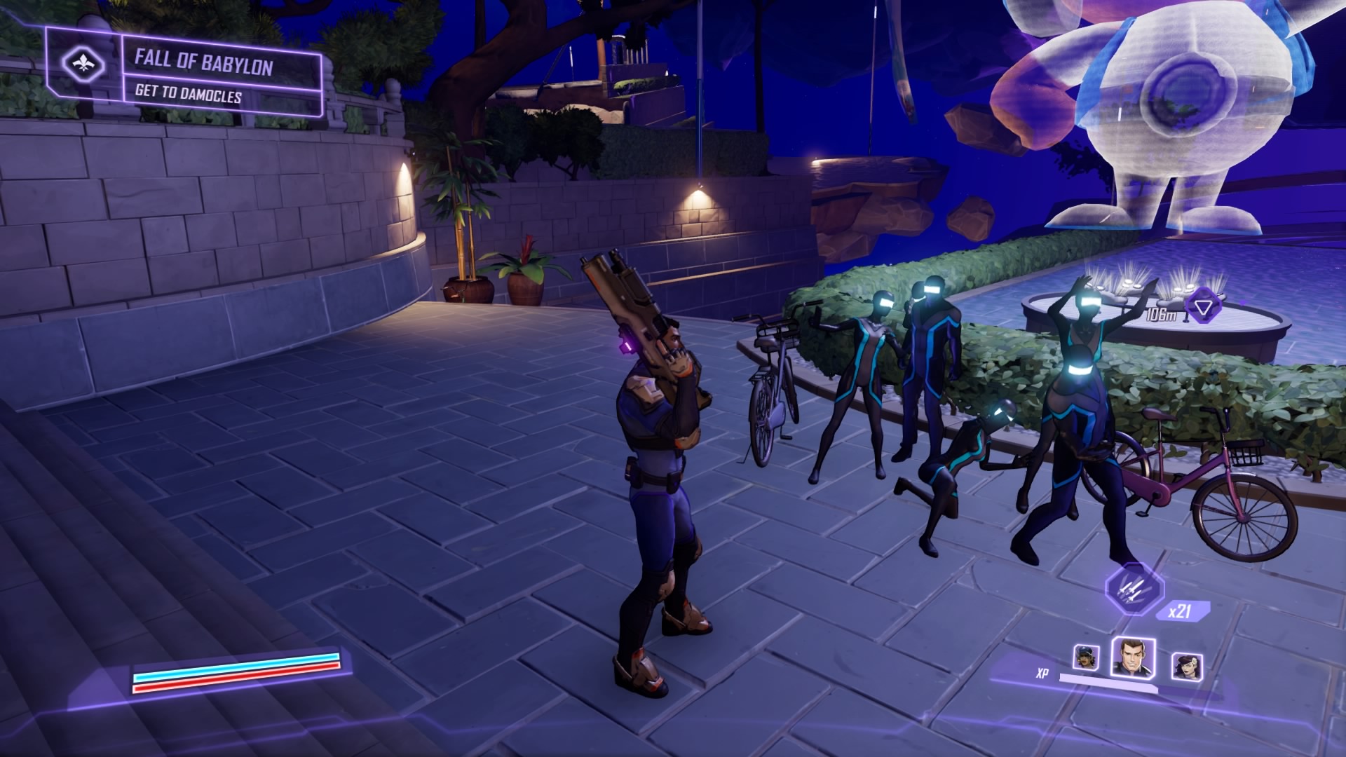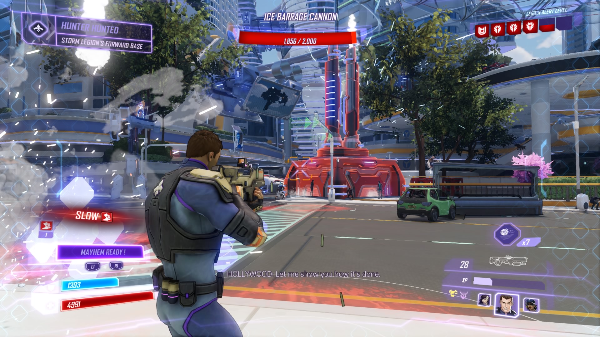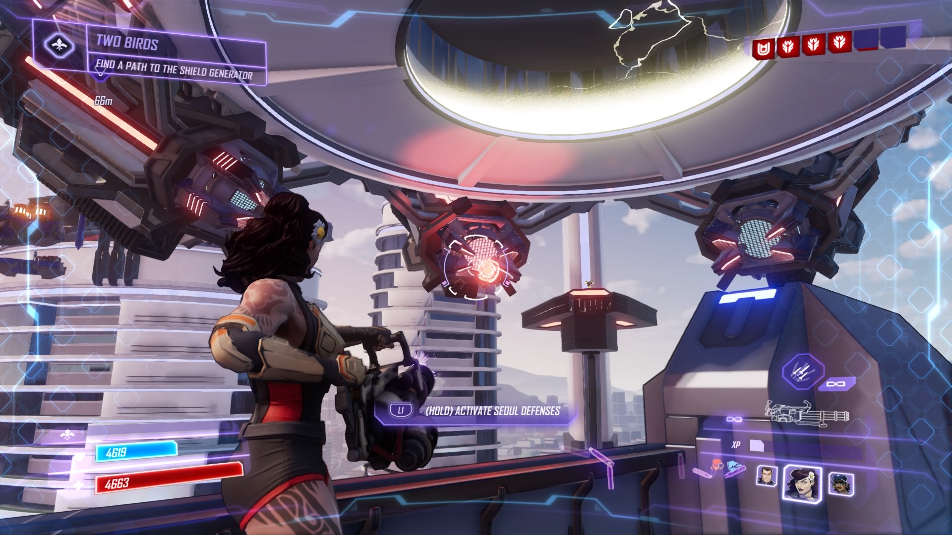 When the turrets are down, destroy the three security terminals, defeat the Tanktrooper that appears, and use the final terminal to save the ARK. Time to hunt down Dr. Babylon – he’s found Damocles’ control room, but the Agents of Mayhem can still end his reign of terror is Seoul.