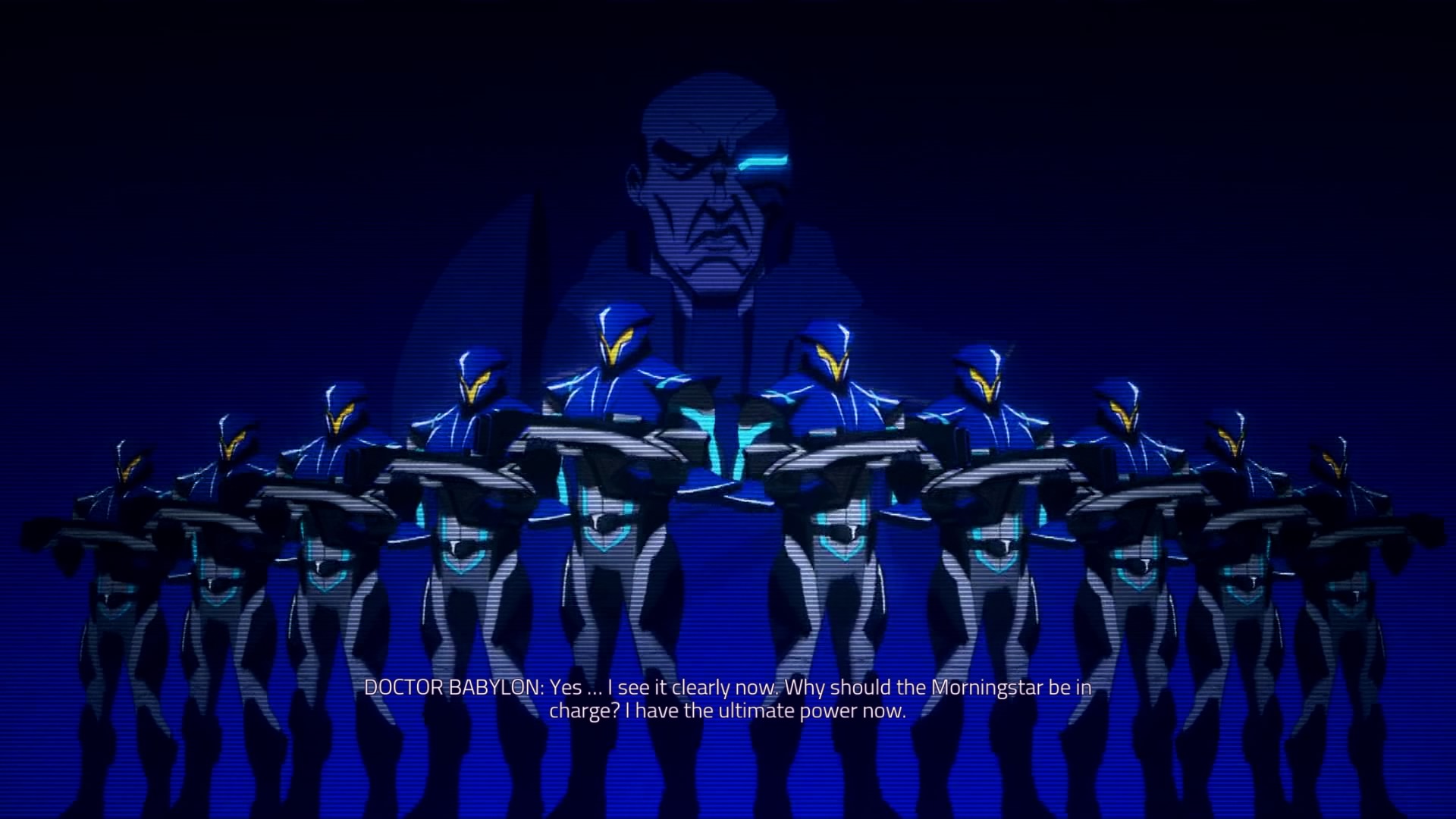 The team finally defeats Dr. Babylon. Morningstar sends his agent to collect the failed Doctor, dragging him away to an unfortunate fate while the heroes of Mayhem leave for another adventure.