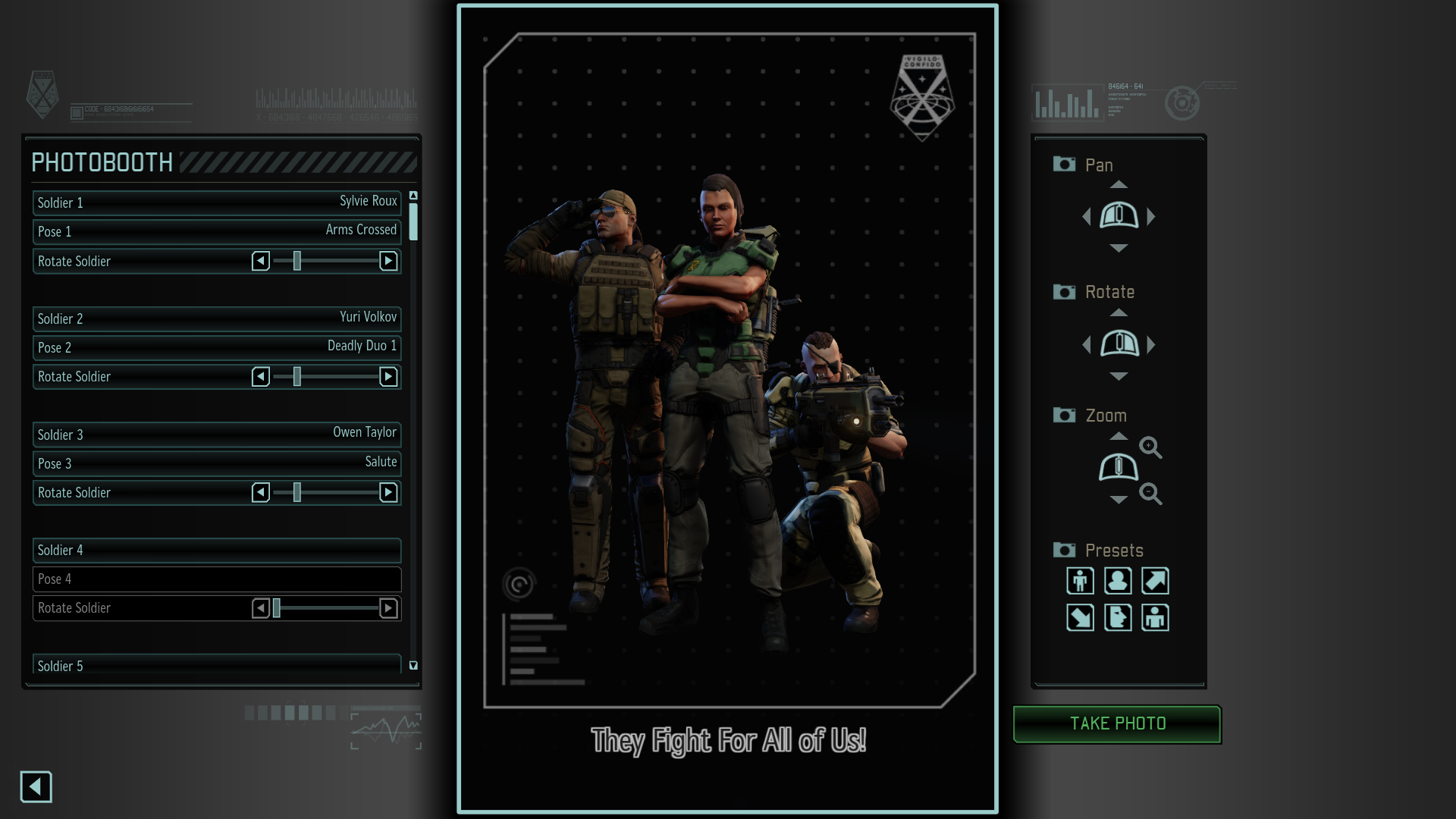 The included Photobooth mode includes dozens of backgrounds, filters, character poses, and options to graphically depict your troops in the most striking, exciting, and morale-boosting way possible. You can use the text editor for memes and motivational slogans, and share your work with the world.