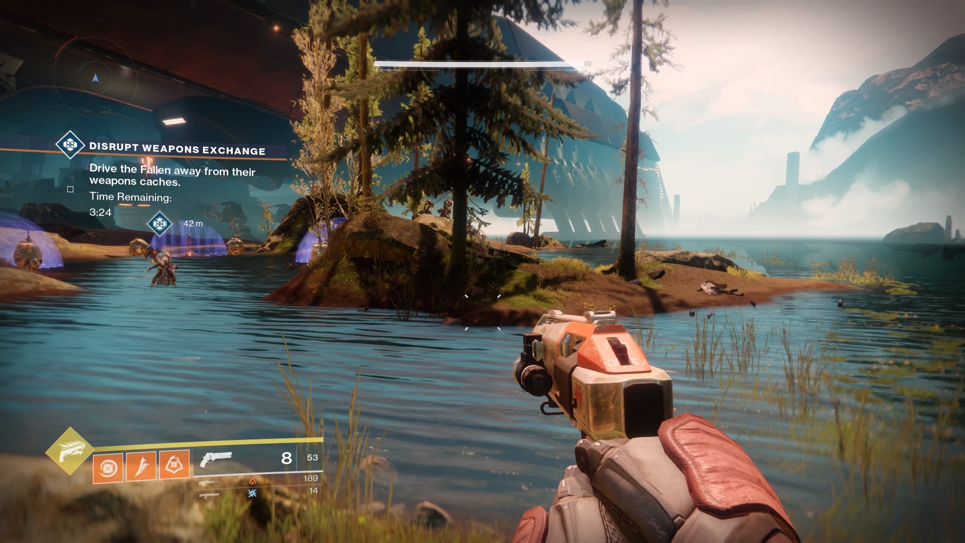 Region Chest #11: At the northern cliff face, look up to spot a crashed Fallen craft hanging from the ledge. Jump up onto the ledge to the right of the ship to find an area with one more region chest.