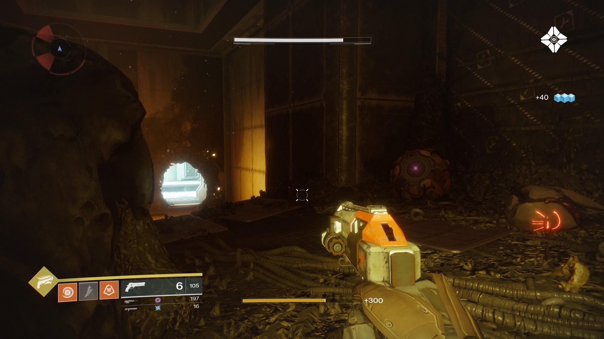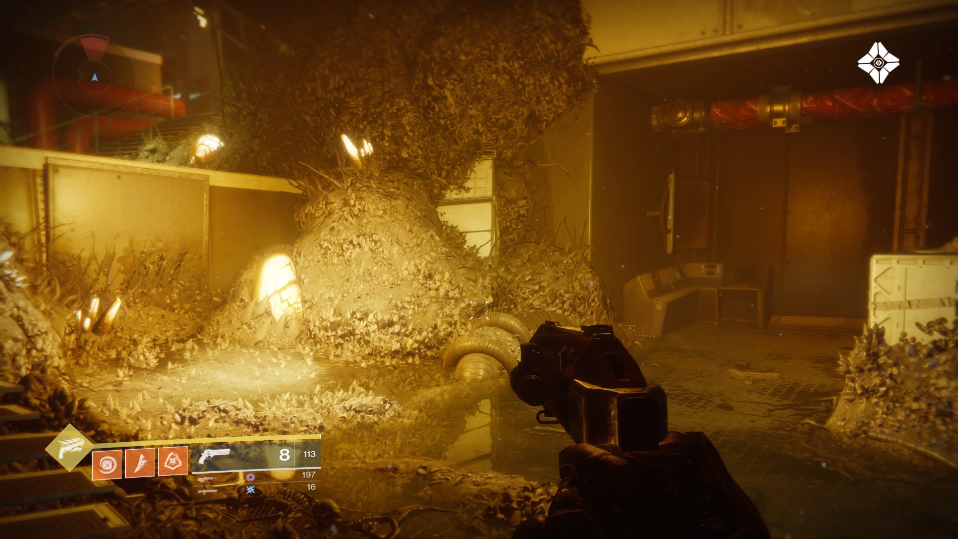 Scannable Object #16: Access the Festering Halls through the door in the back-right of the Solarium. Inside the first open plaza, go up the stairs and into the first dark chamber. Inside, there’s a glowing object stuck in the Hive gunk, near a locked red door.