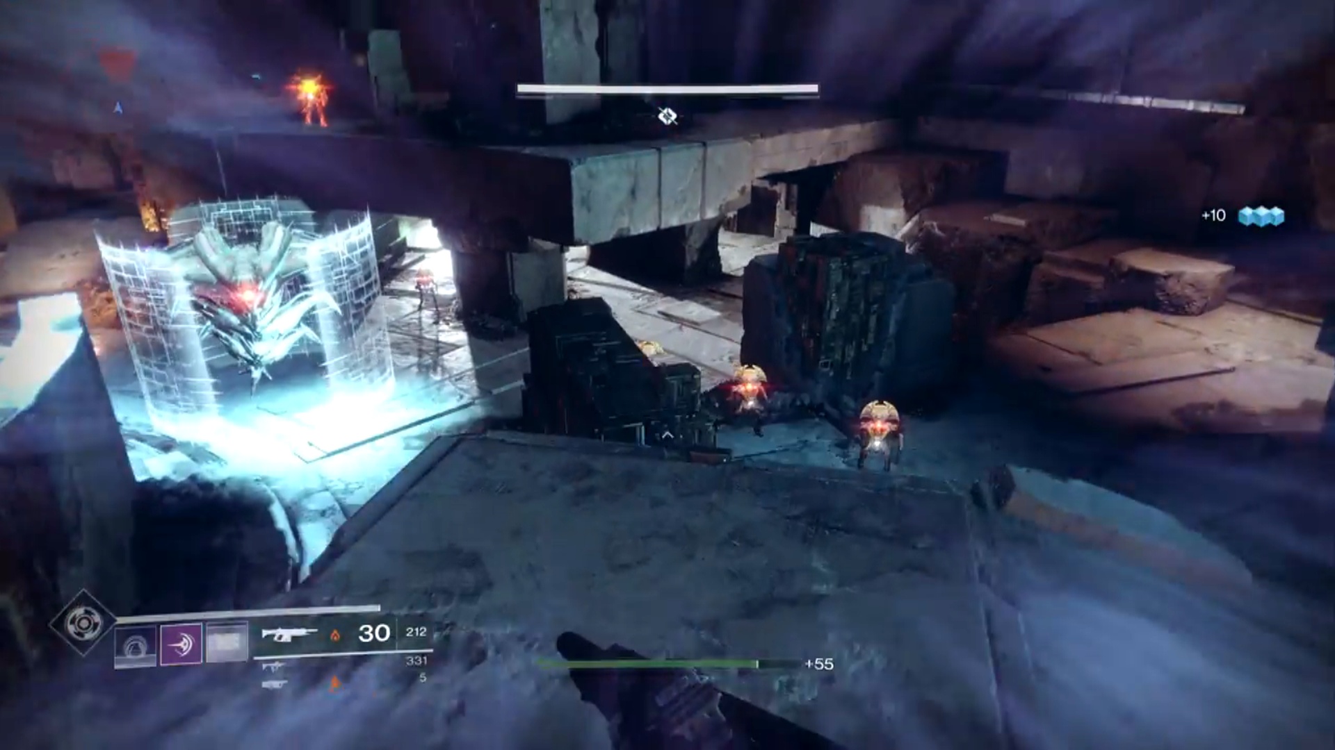 Once you’re on the top platform, look down and take out the swarm of enemies until Hapax is all by itself. From there, you will once again, fire down at Hapax until you get a third of its health dwindled away.