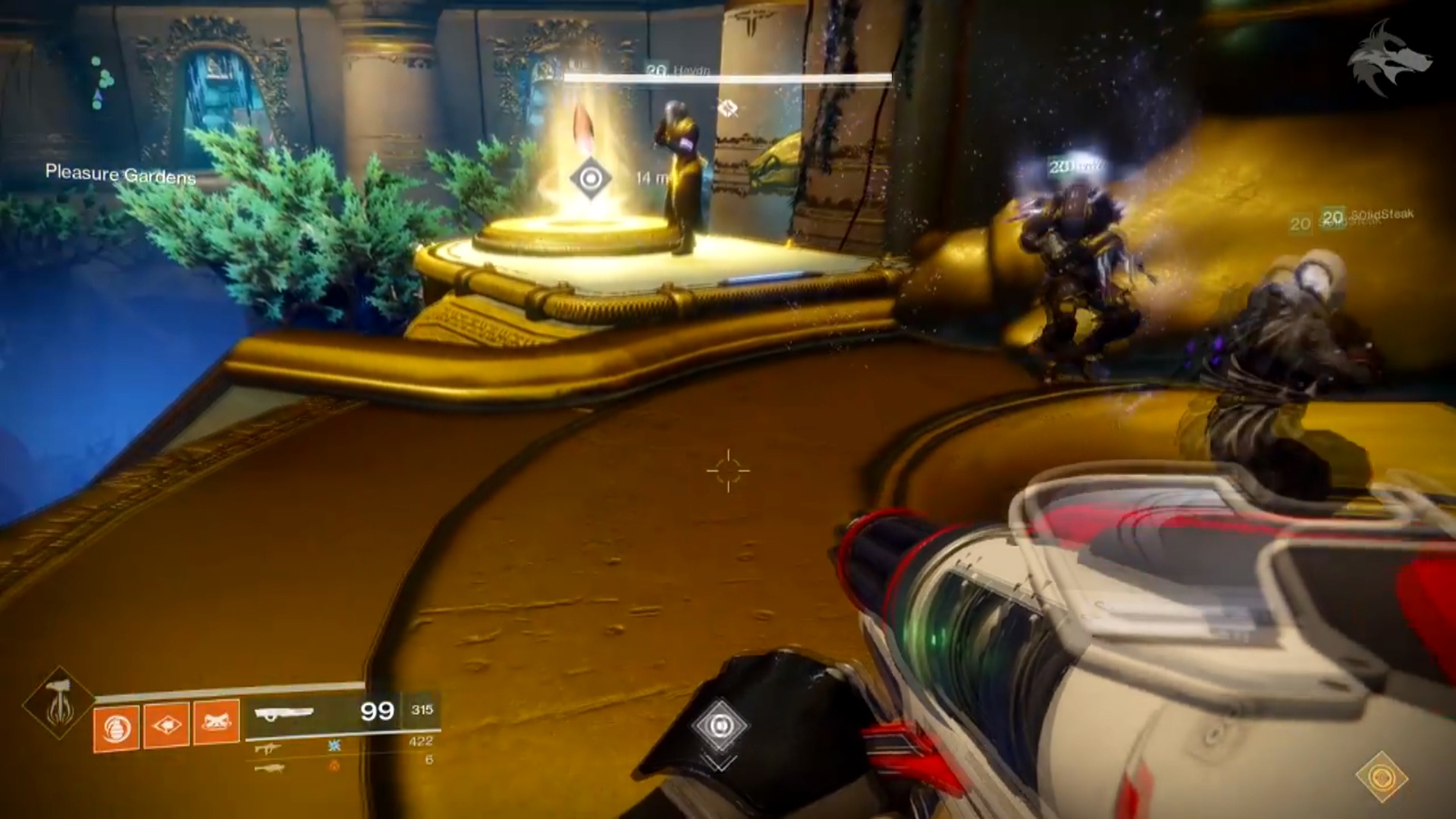 The raid only gets tougher here in the Pleasure Gardens so make sure you take your time and follow the directions carefully. This area will have two teams, but first, before you split into these teams, you need to kill off all the enemies in the area and then make your way to the massive statue.