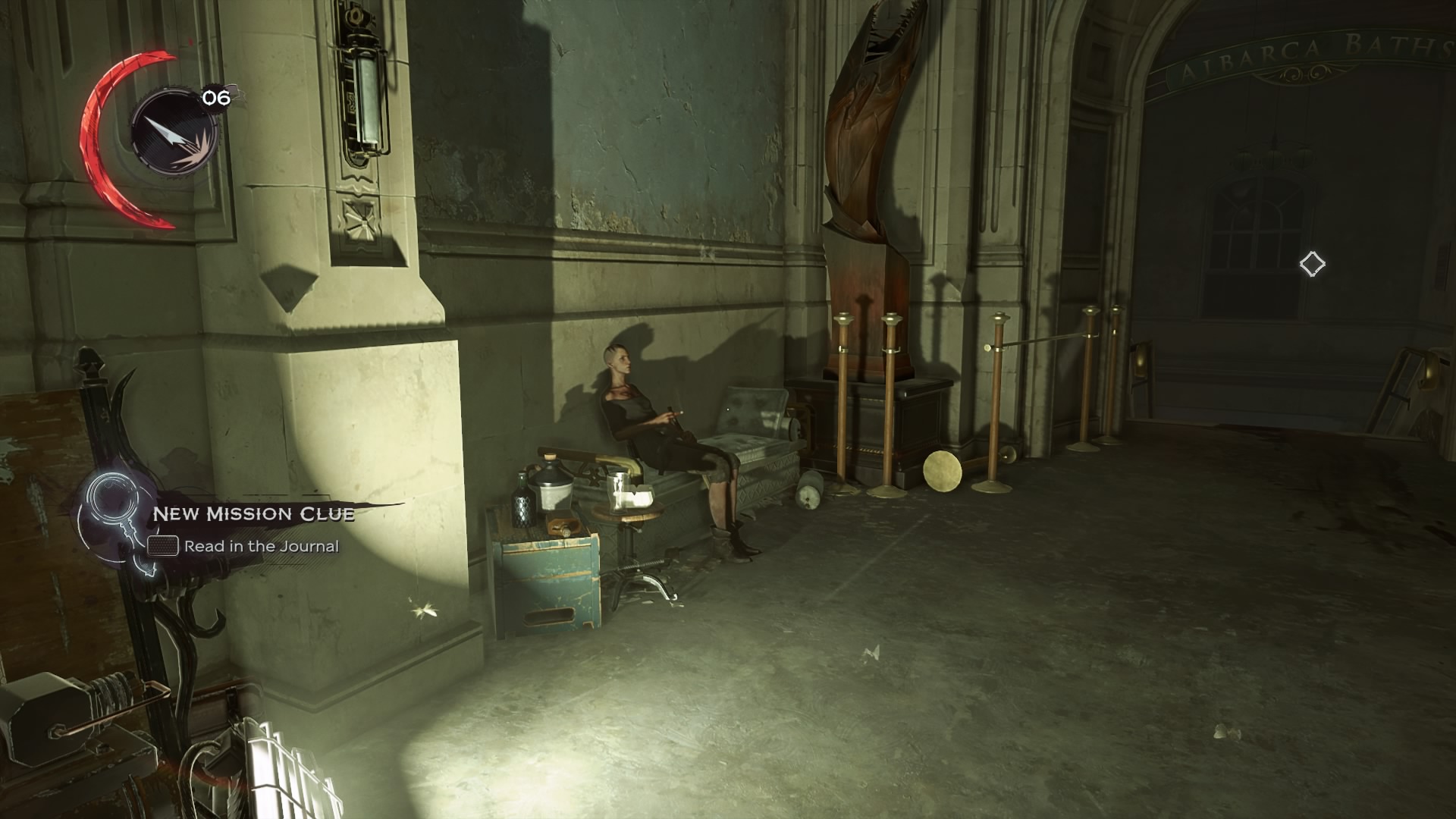 To complete the mission without killing everyone in the Albarca Baths, you’ll need to free Daud from his captors. The path into the Albarca Baths is unguarded — Billie Lurk can just walk right into the first floor fighting area and find Daud trapped in the pit below.