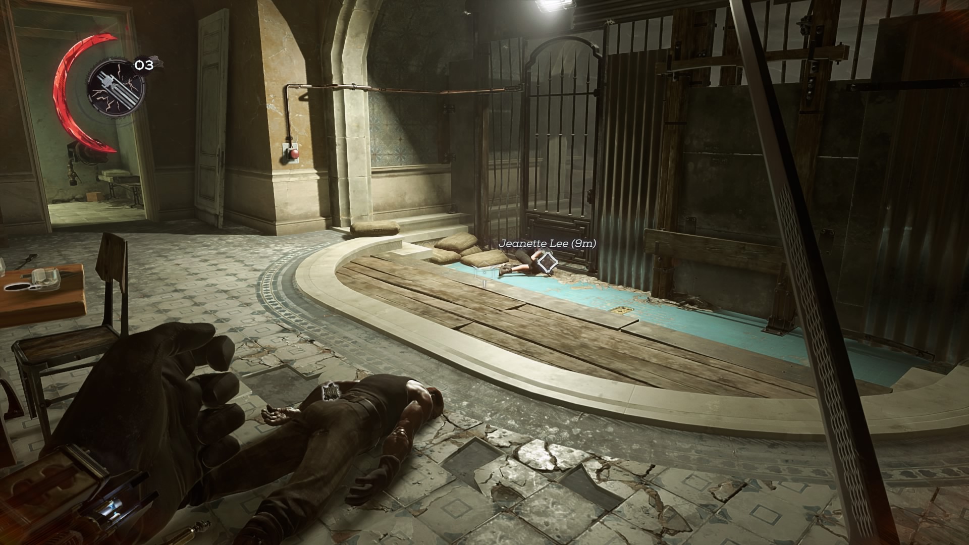 To free Daud, you’ll need to collect Jeanette’s key. The leader of the Eyeless gang is carrying the key on her belt, and she’s located in the upstairs office beside the kennel. Getting upstairs is the tricky part — the upstairs is a restricted area. If you’re seen, the Eyeless will attack on-sight.