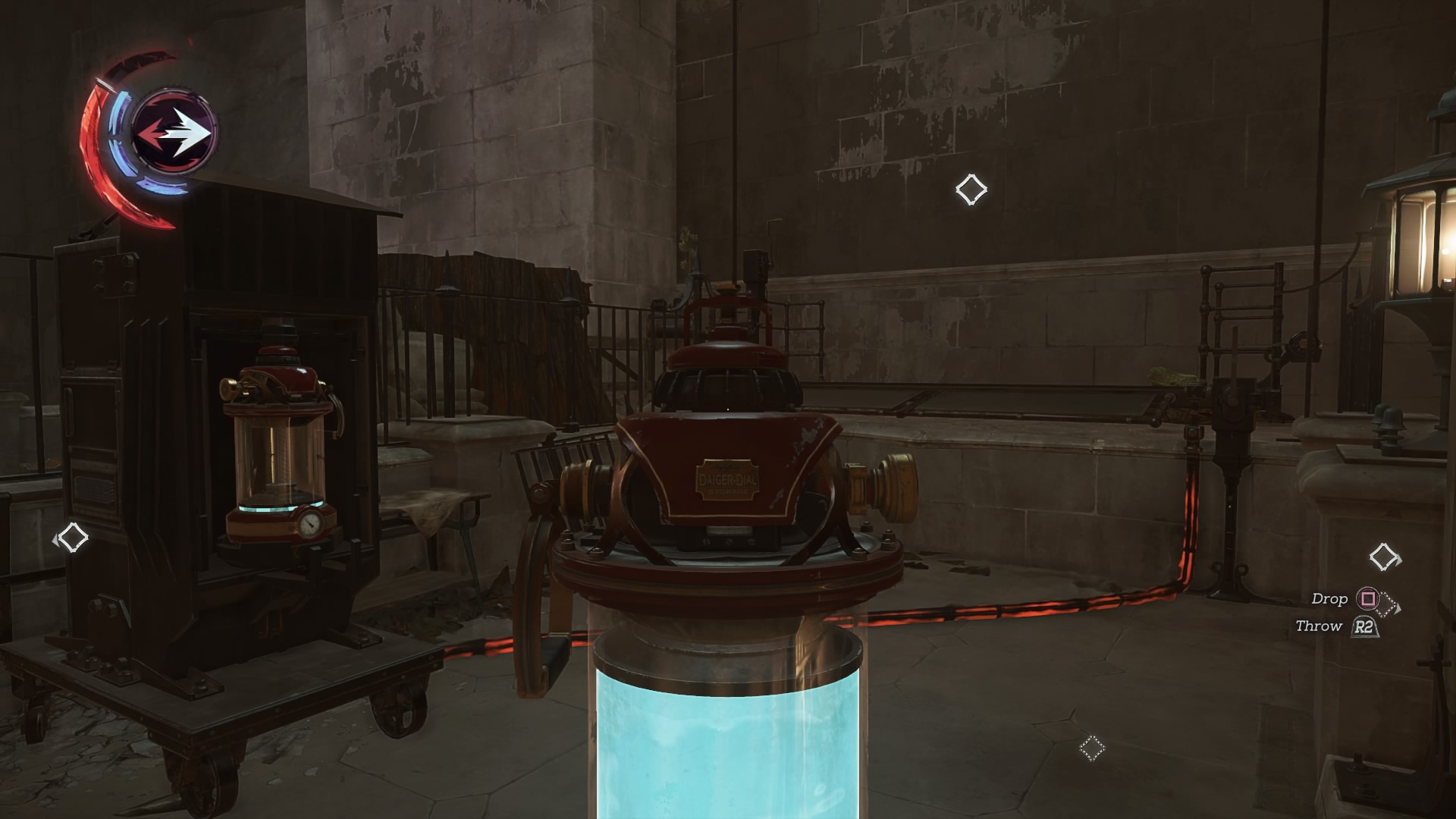 Now that you have the Laudanum, you’ll need to reach the rooftop and insert the laudanum into the vents. There’s only one way onto the roof — a cart to the right of the bank entrance. Unfortunately, the cart is without power. You’ll need to locate a fresh whale oil tank and insert it into the generator.