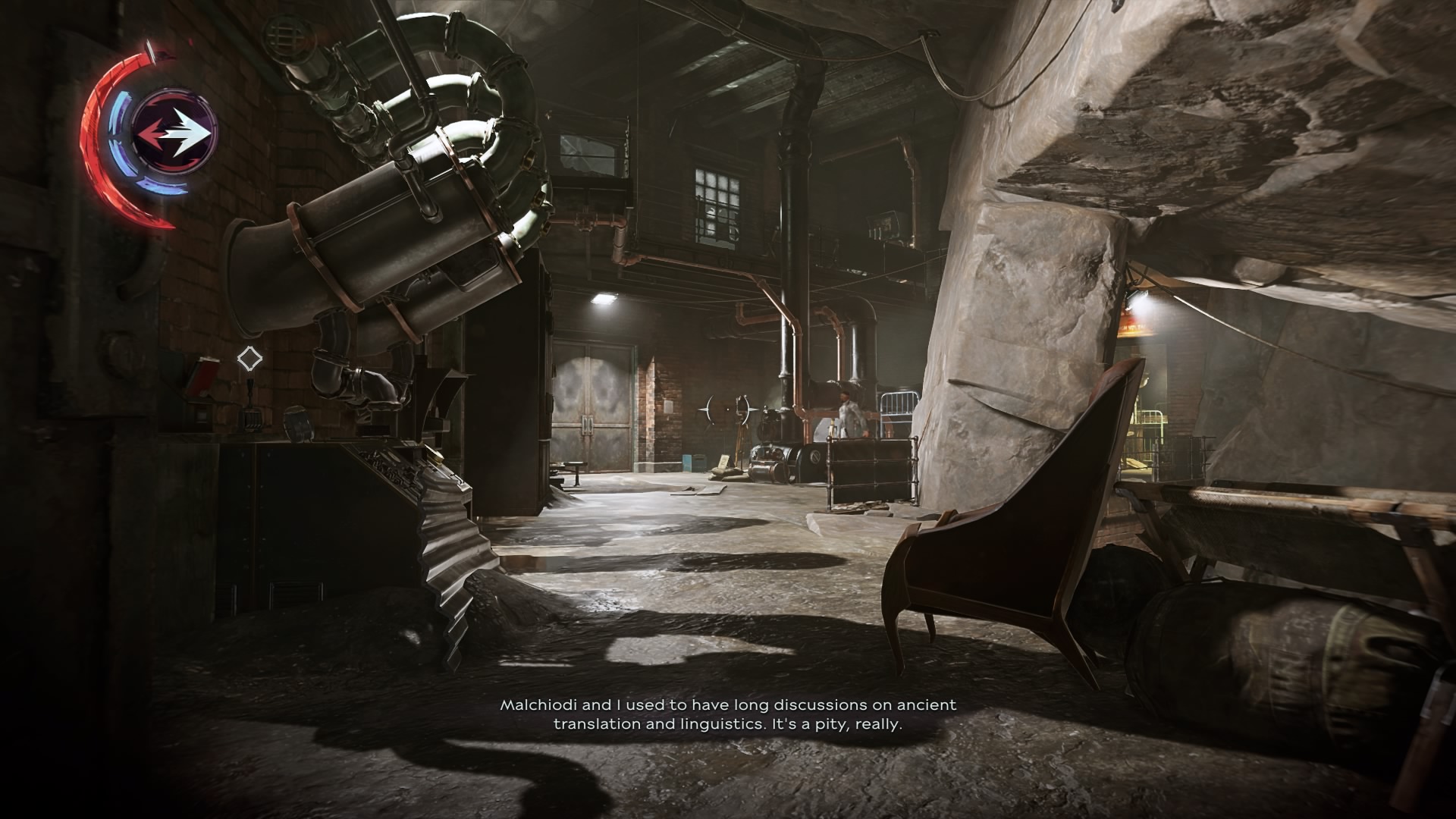 Upstairs in the factory, you’ll encounter more sweeping cultists. Jump onto the walkway on the right to sneak up and around these guys to reach a passage into the mines. The mines are packed with even more cultists, so keep Semblance handy to sneak through safely.