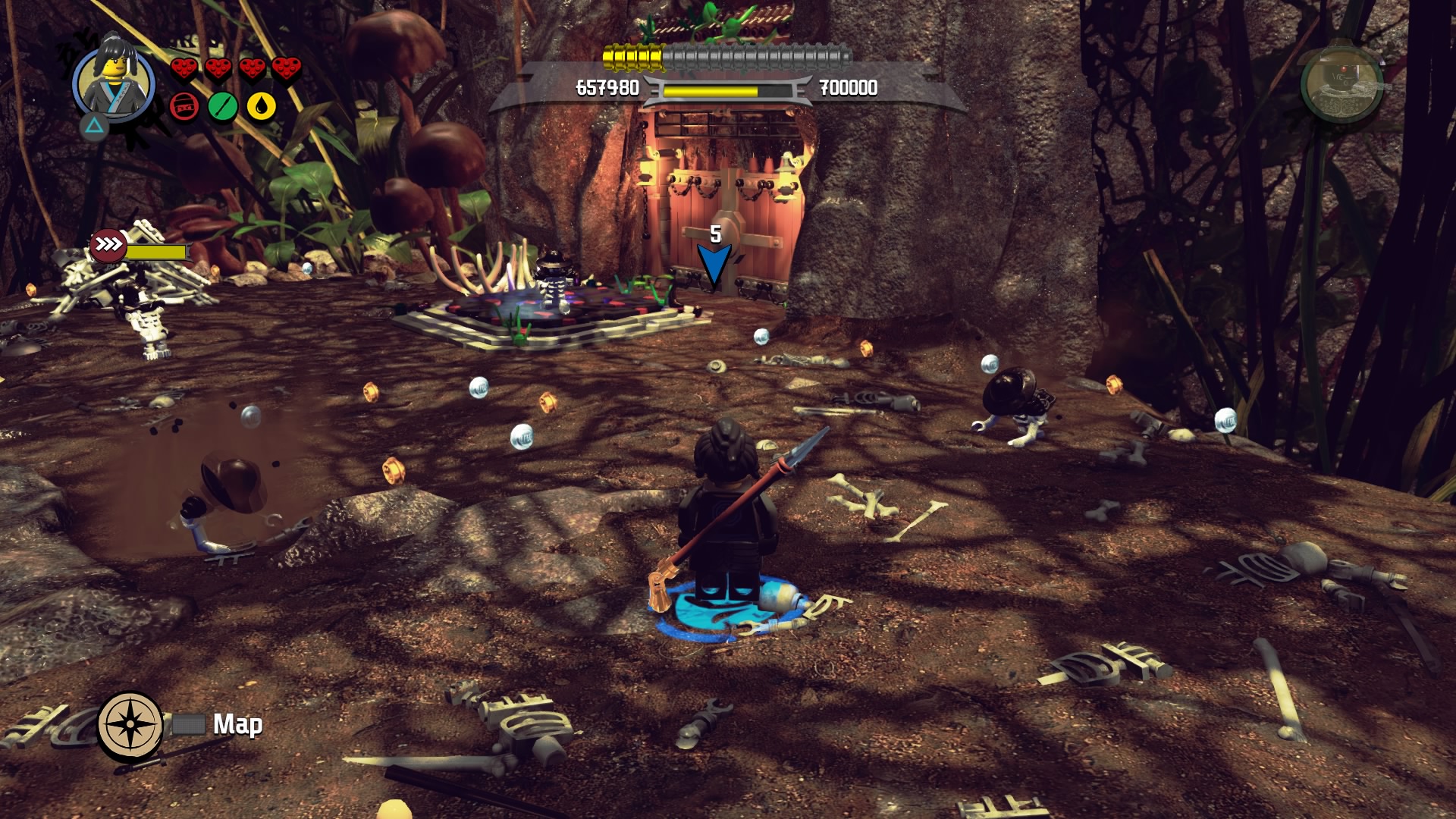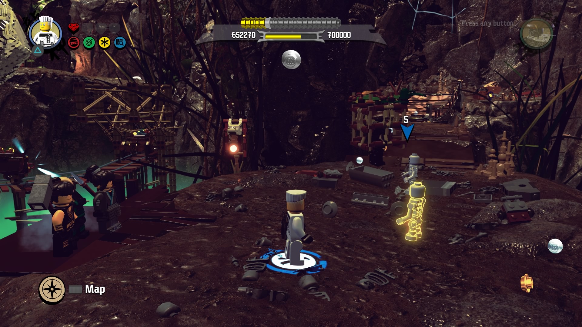 Lord Garmadon just won’t give up. In Level 5 of The LEGO Ninjago Movie Video Game, you’ll have to get Lord Garmadon through a treacherous cavern filled with creepy crawlers and fighting skeletons. Each gate is locked with a “Garmadon Cage Pad” — you’ll have to get Garmadon to each pad, and that can get tricky when the cavern is full of wall runs and other obstacles the caged Warlord can’t interact with.