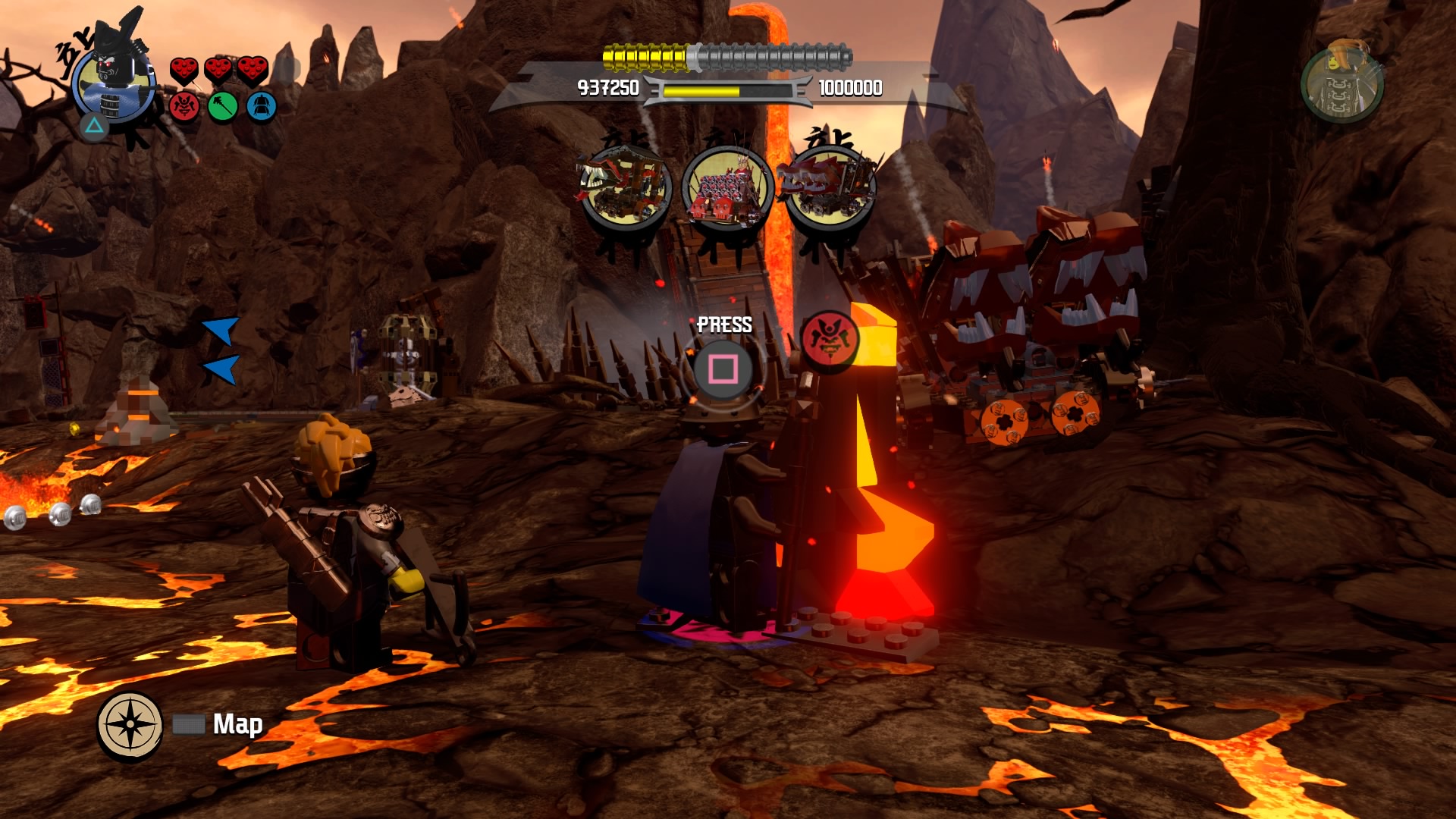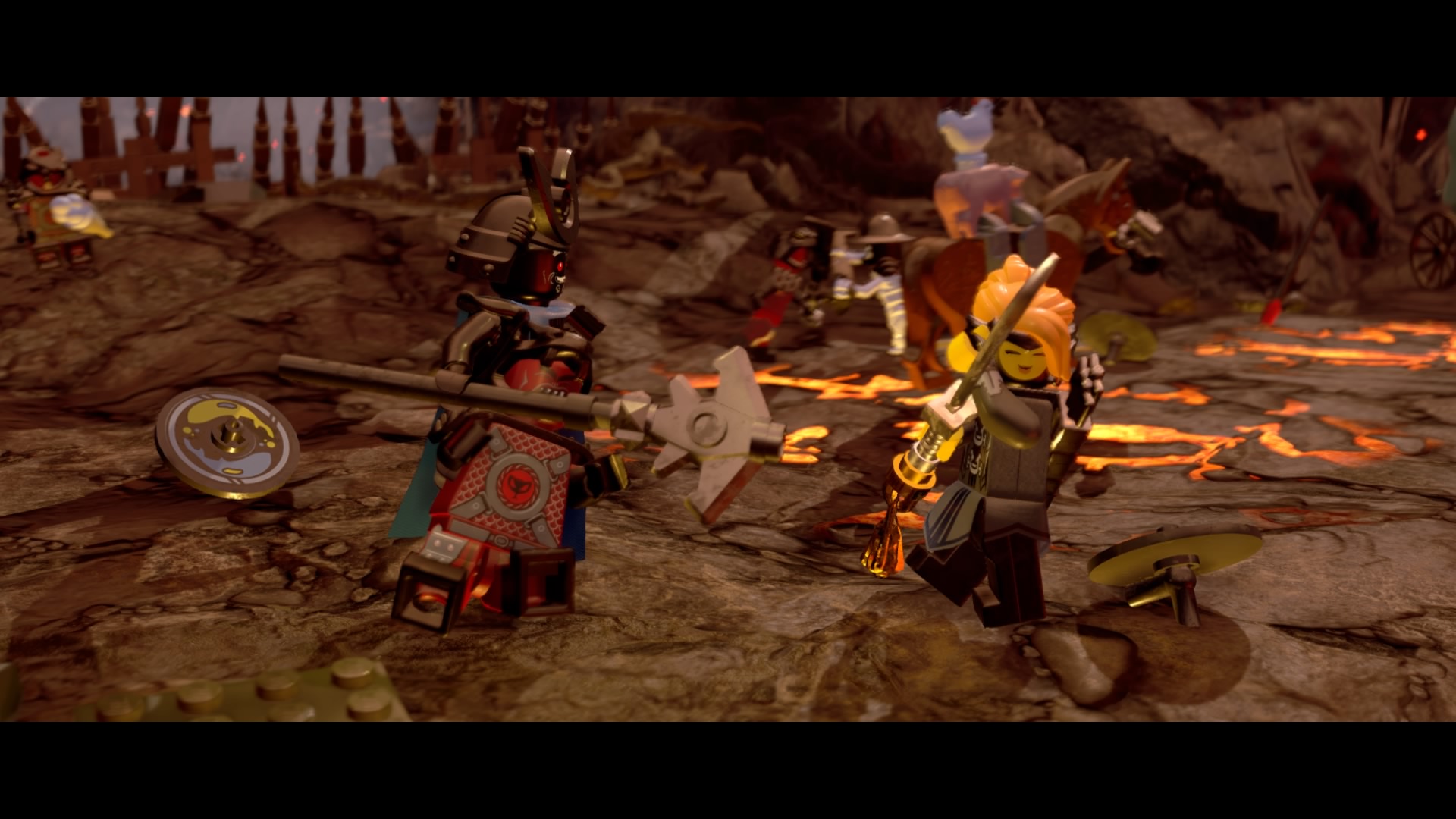 The Battlefield is the second part of Level 7, continuing right as you reach the Temple of the Ultimate Ultimate Weapon. Here, we learn some LEGO Ninjago Movie Video Game backstory, filling us in on Lord Garmadon’s past with Lloyd’s mother Lady Iron Dragon. The pair were a formidable team, trashing two evil armies all at the same time.
