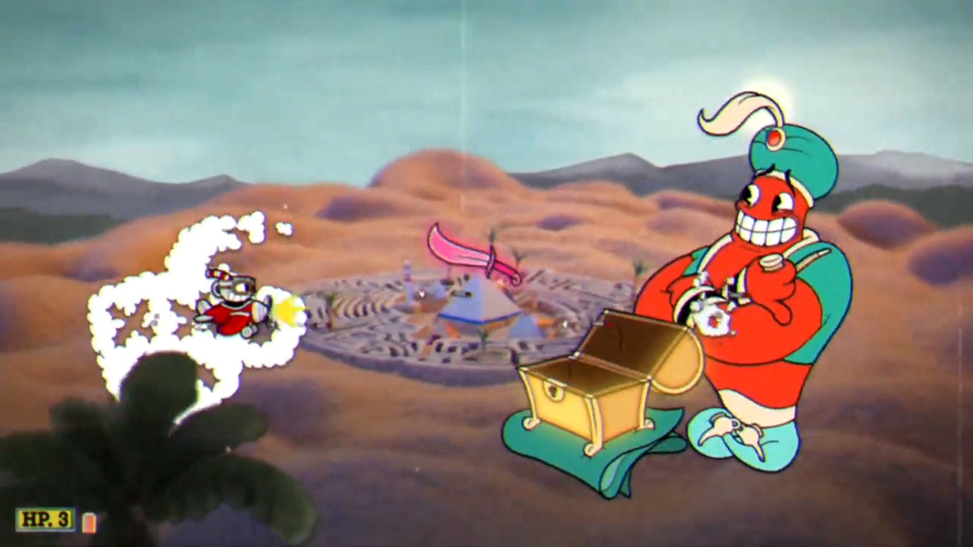 As the puppet, the genie will mimic the peashooter Cuphead and Mugman use as its standard first weapon. Likewise, the hat of the genie’s will spin and fire out projectiles.