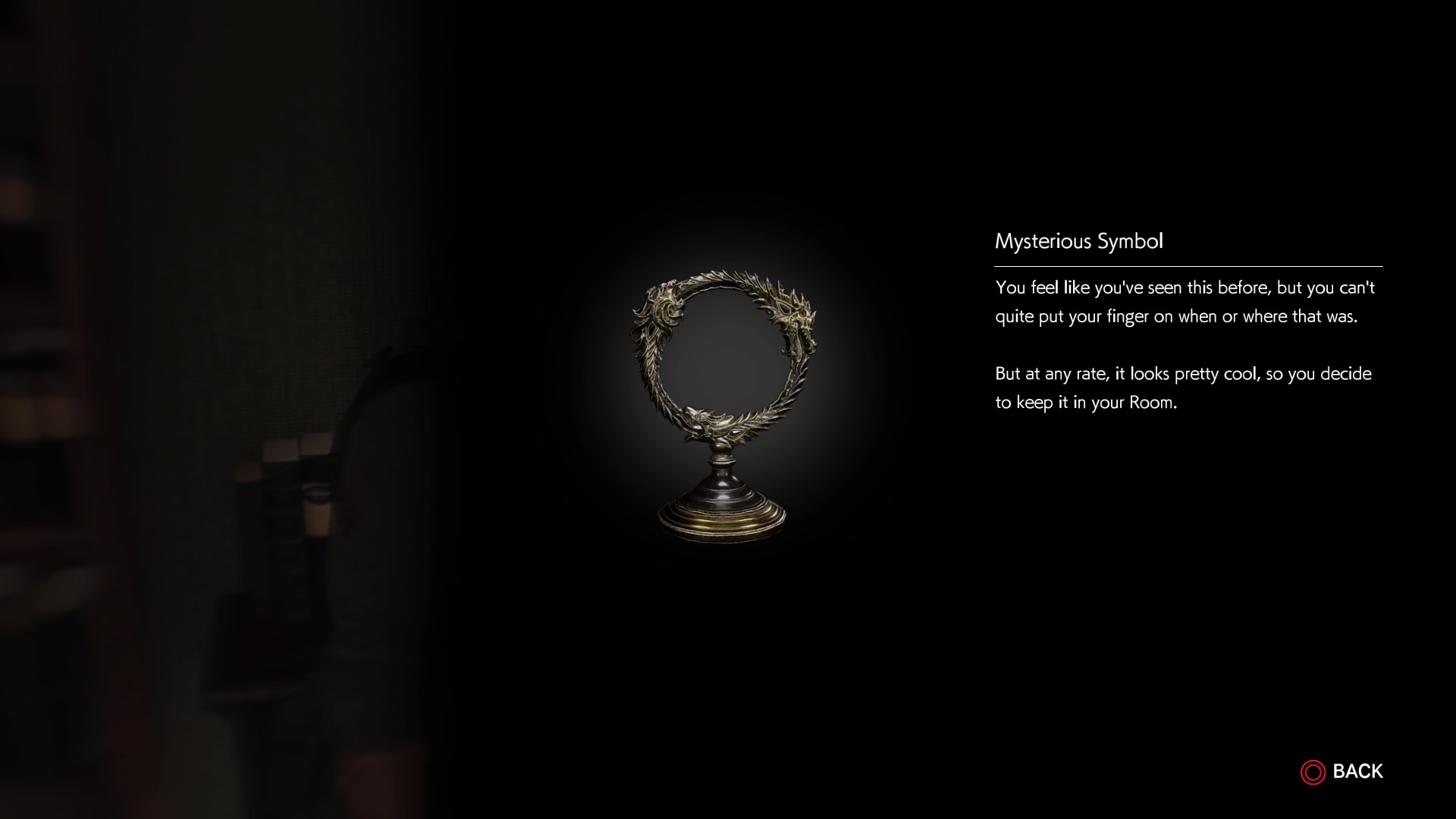 - During Sebastian’s return trip to his pristine house, look inside the office at the top of the stairs. The small room is hiding the Skyrim Mystery Object to the left, opposite the window.