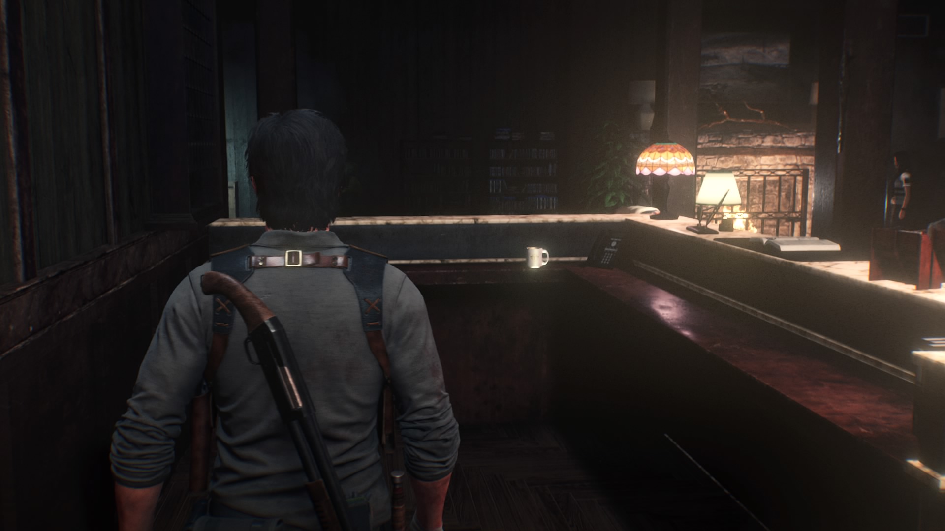 - After reaching the Hotel, Sebastian will call Hoffman and ask her to take a trip over to the Hotel before attempting to breach the Stronghold. When you regain control, check the front desk in the lobby for a coffee mug before talking to Hoffman.